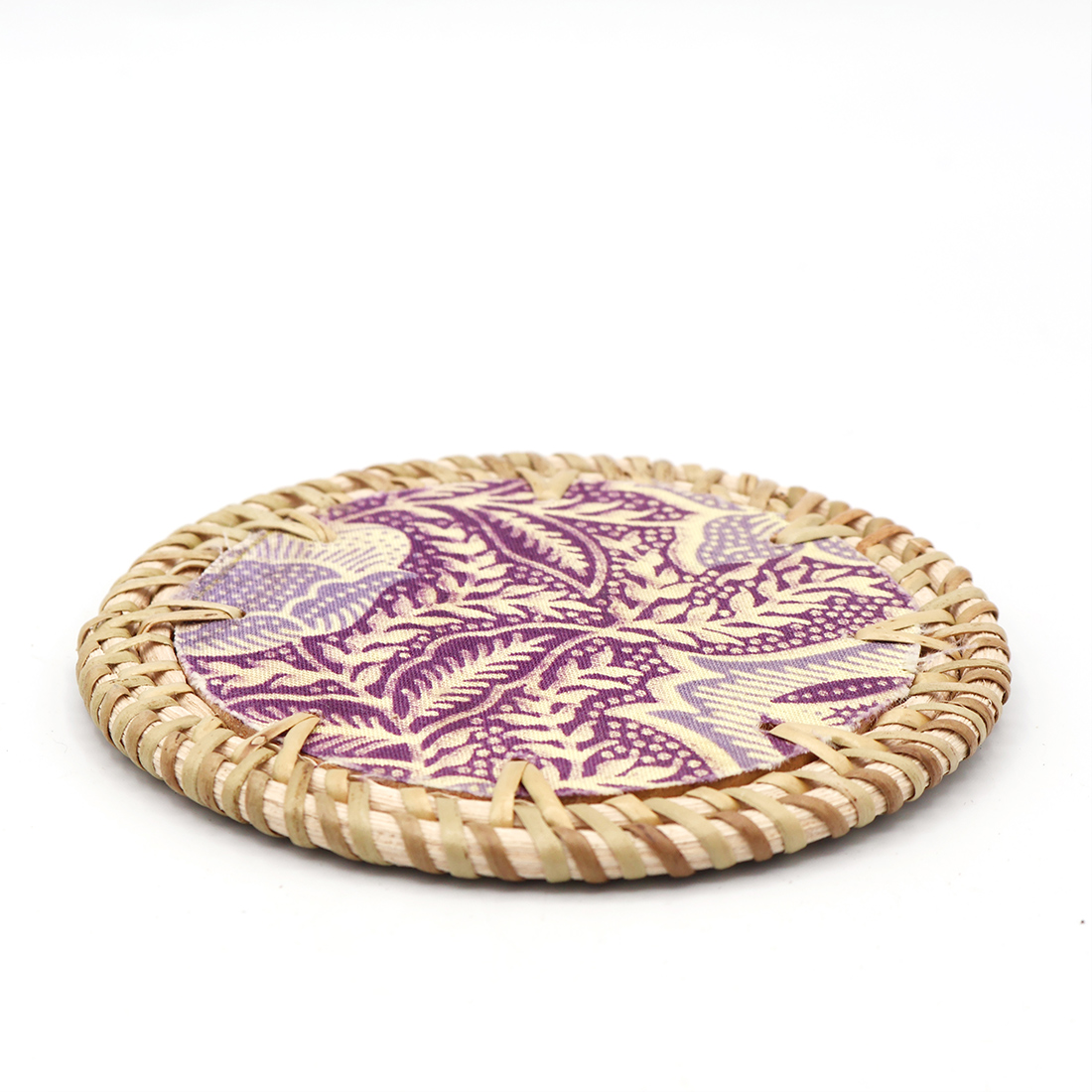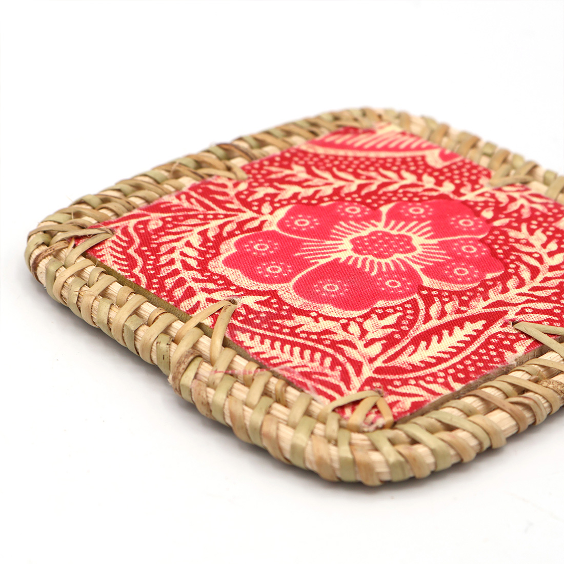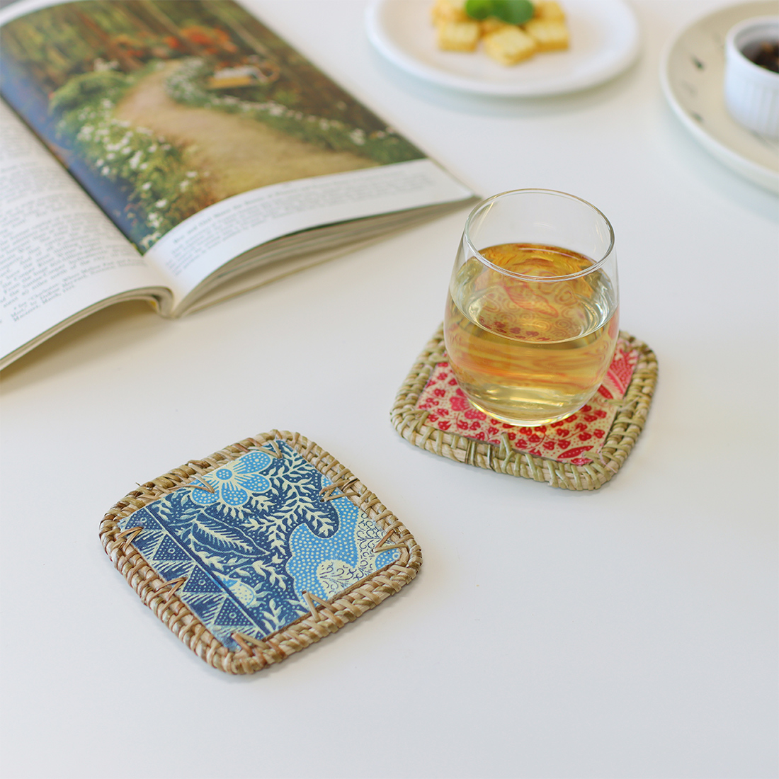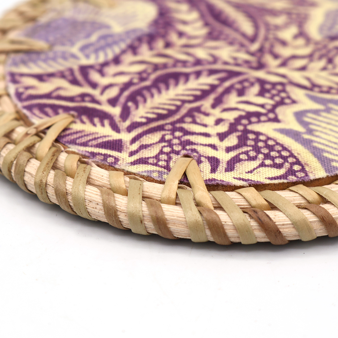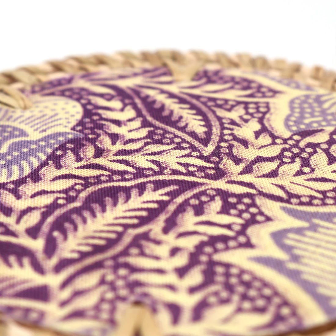 インドネシアの伝統技法・バティック(ろうけつ染め)の柄をモチーフにした、雑材コースター。