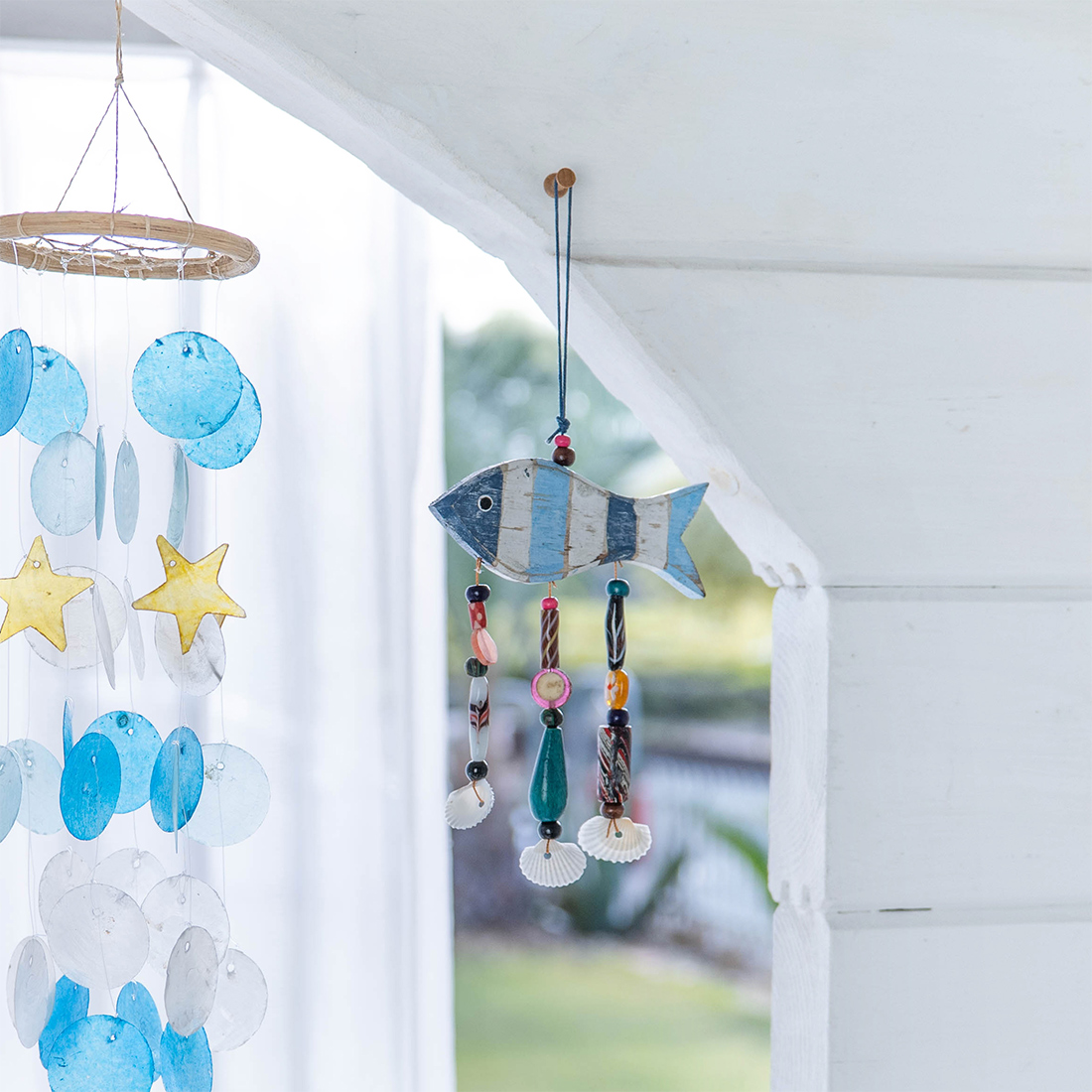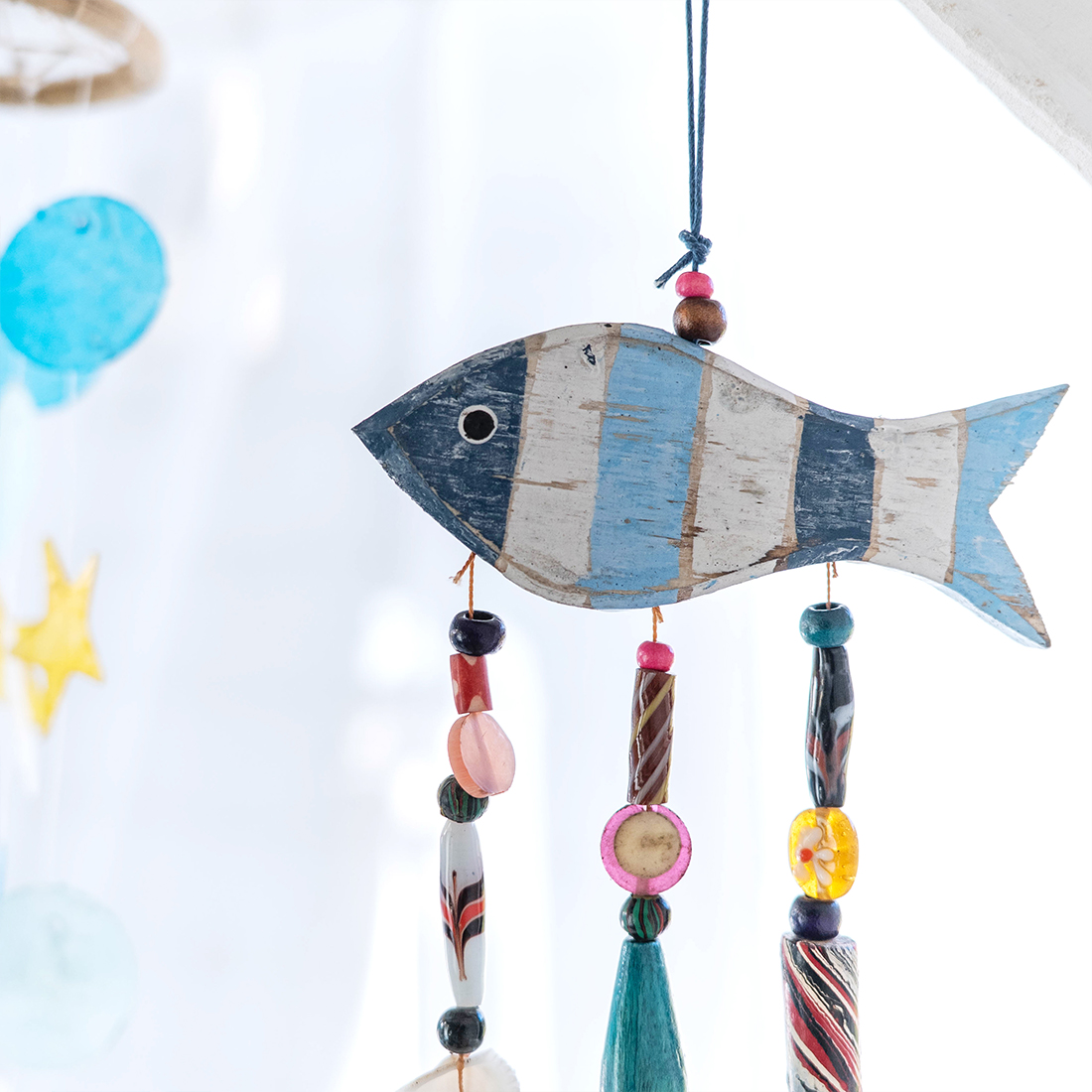 シャビーな風合いに仕上げた、ウッド製マリンモチーフのミニサイズのガーランド。