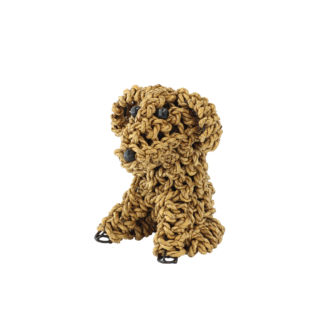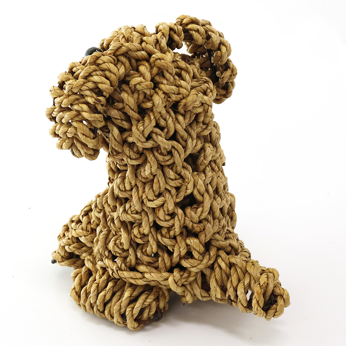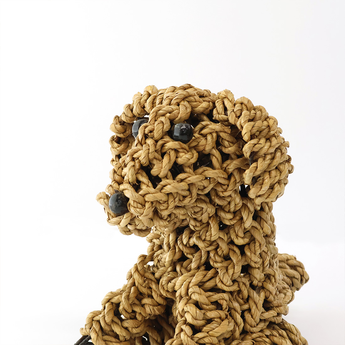 水草(シーグラス)を丁寧に編み込んで仕上げた、お座りしたドッグモチーフのハンドクラフトオブジェ。