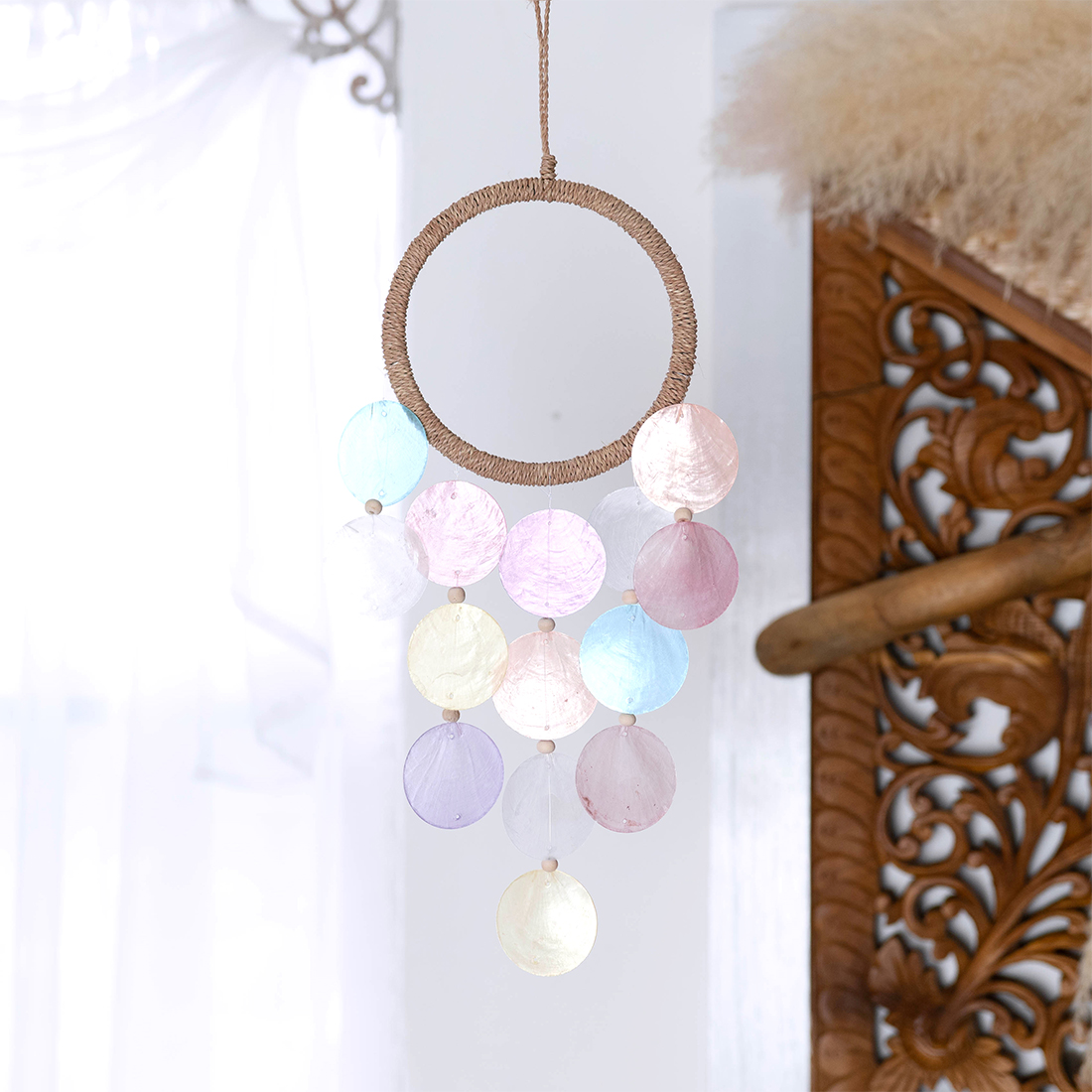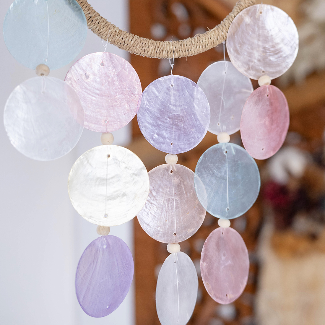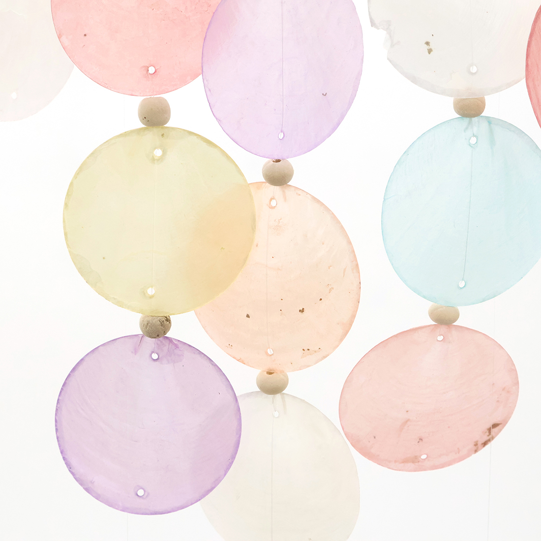 光を受けてきらめく、カピス貝の爽やかガーランド