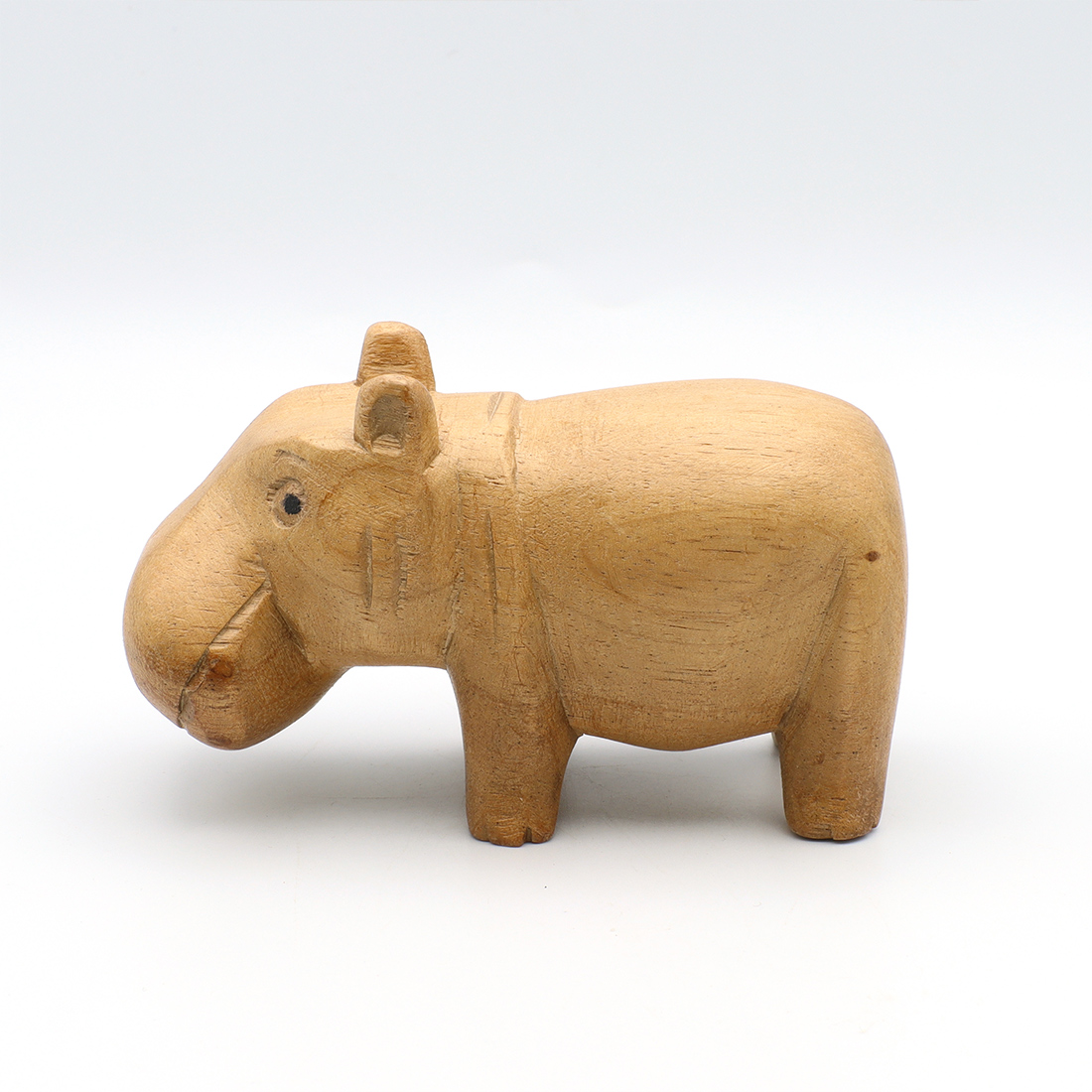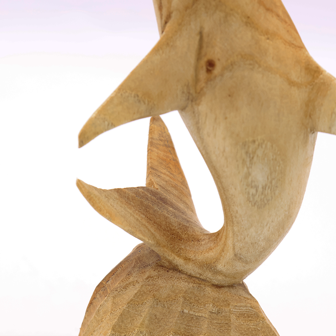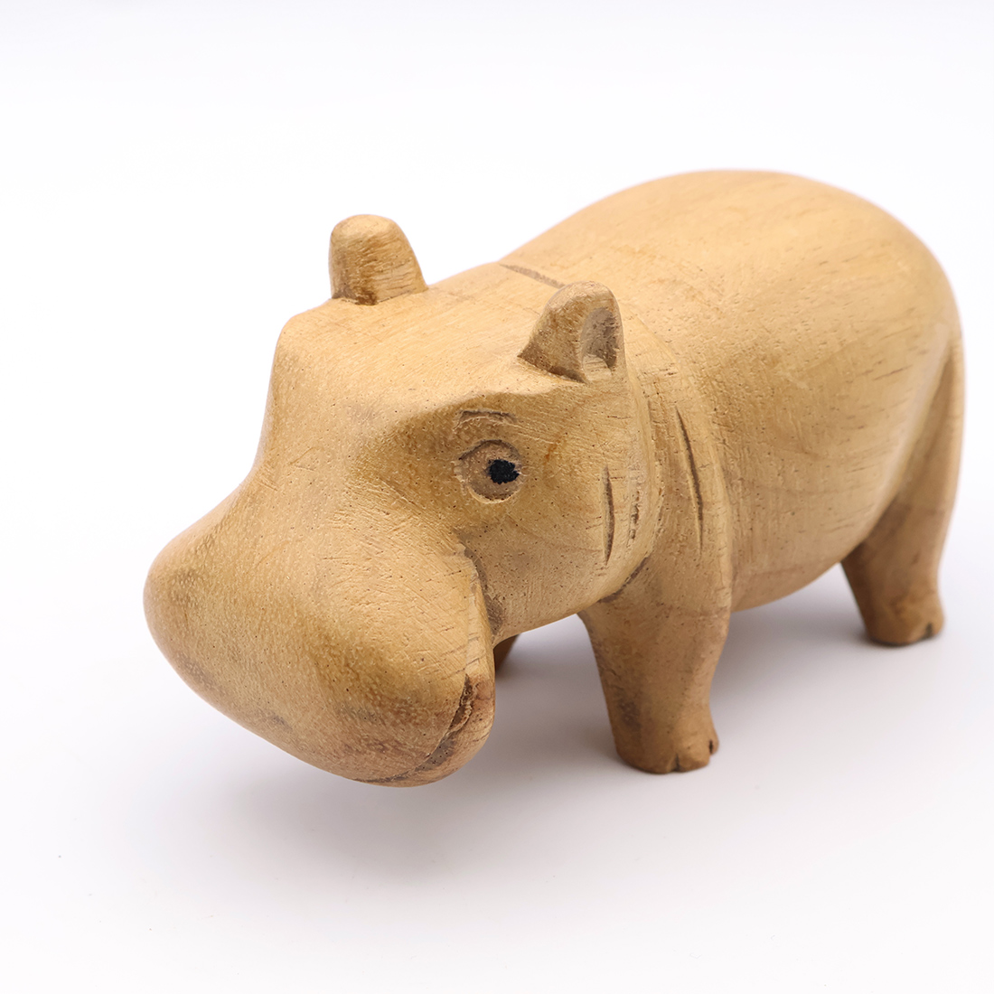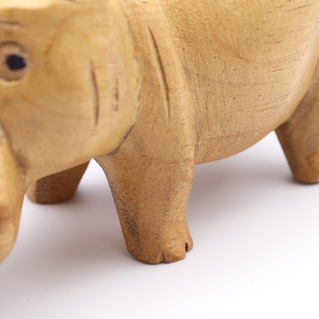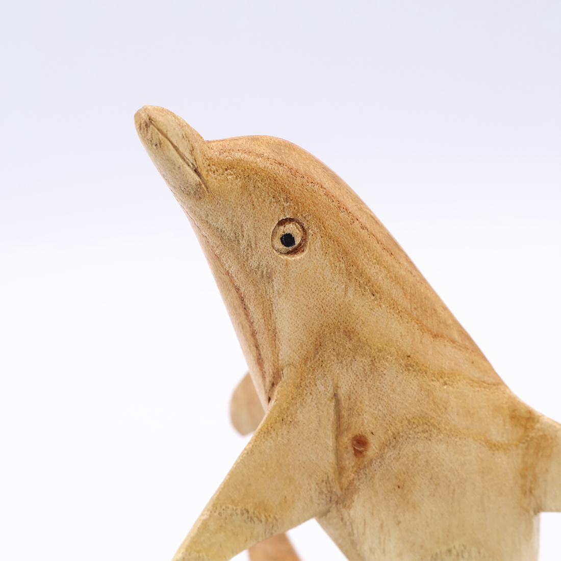 ナチュラル空間に映える、カバとイルカの木彫オブジェ