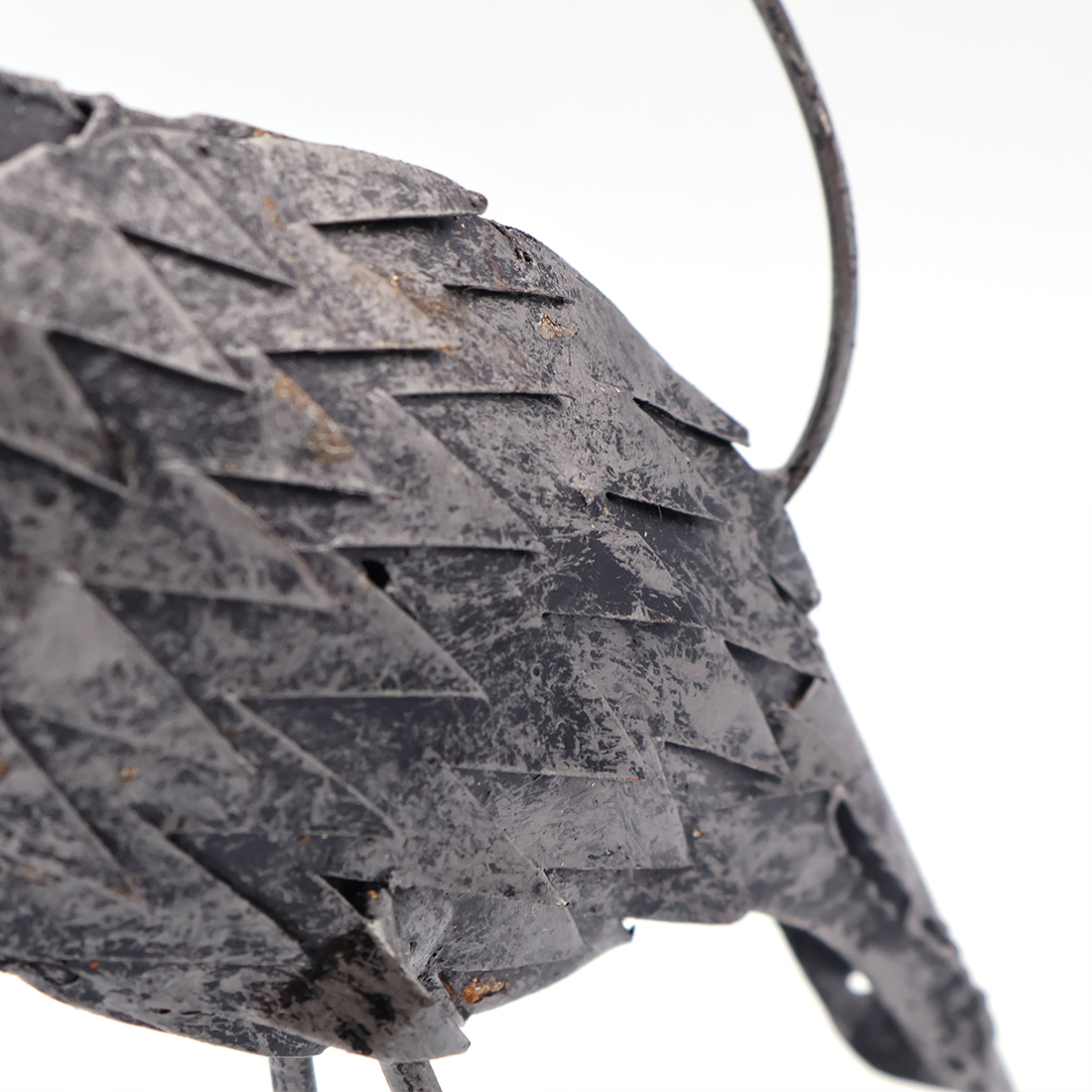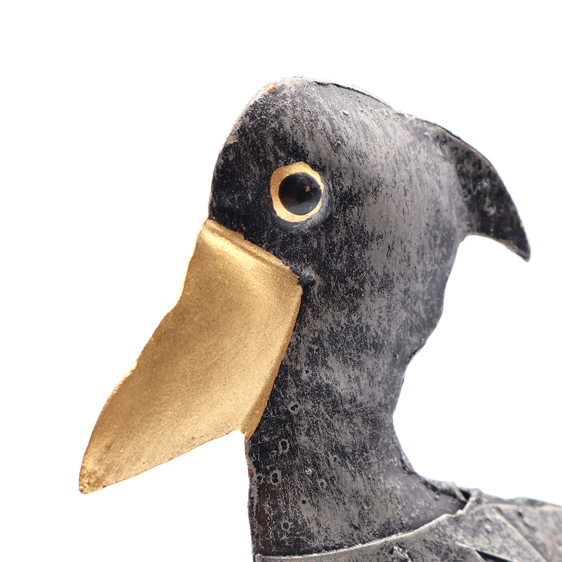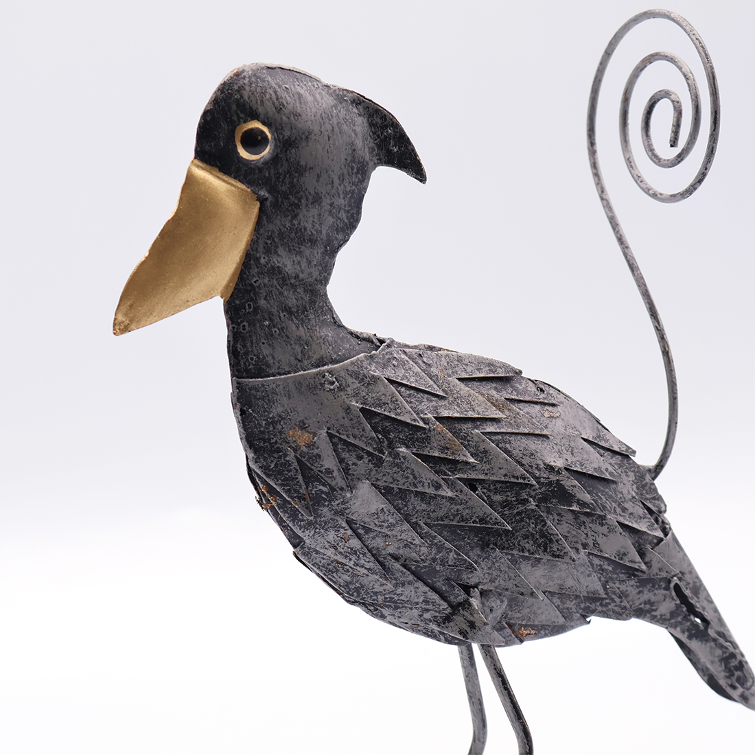 個性的なハシビロコウデザインのブリキ製カードホルダー。