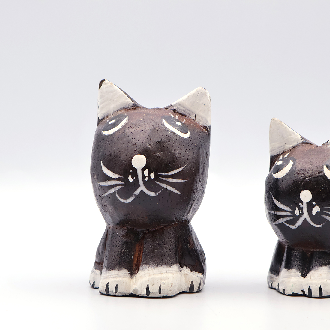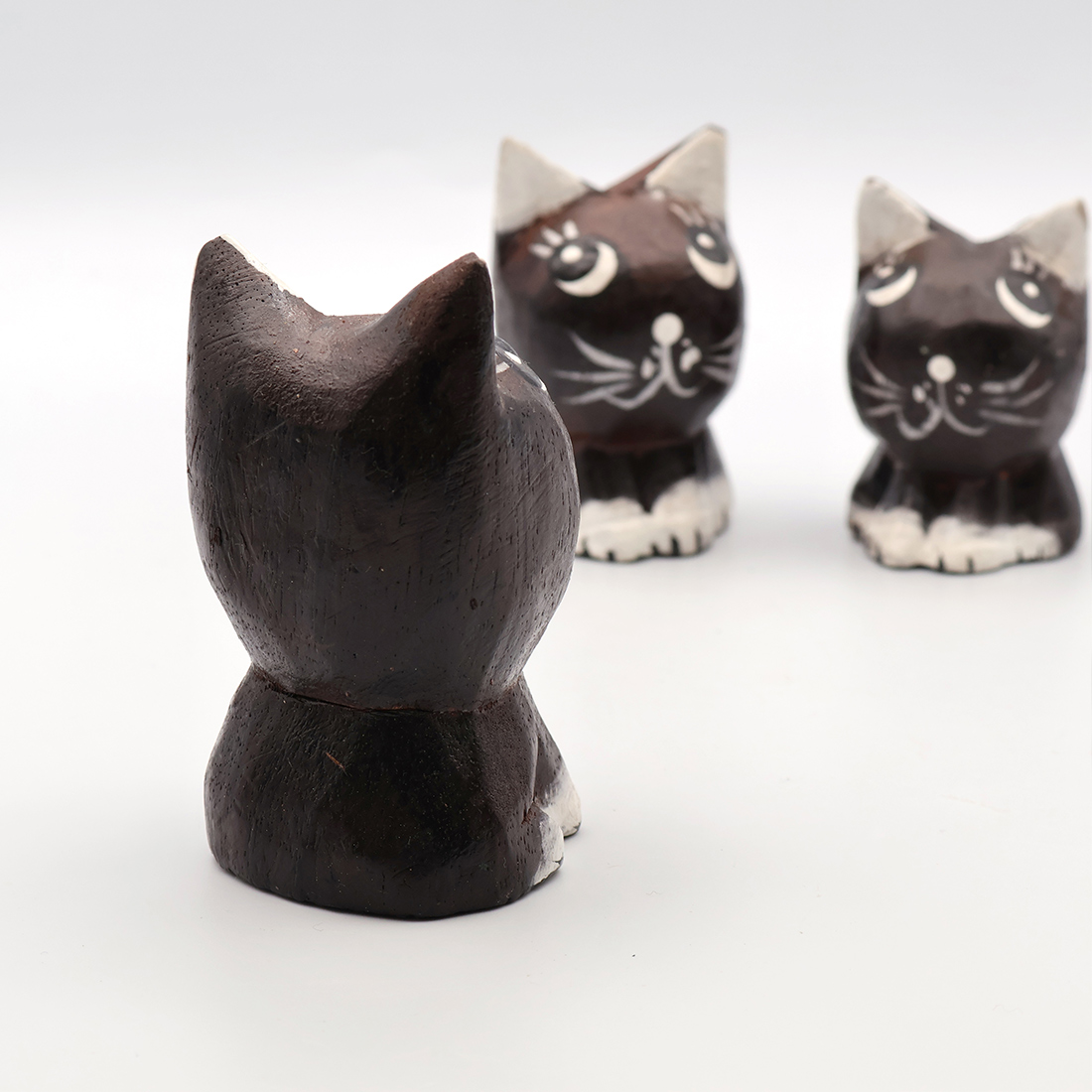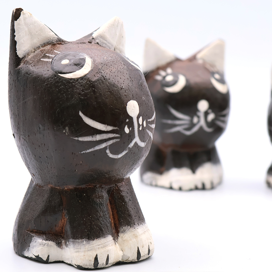 人気アニマルのクロネコとカエルの木彫オブジェ♪