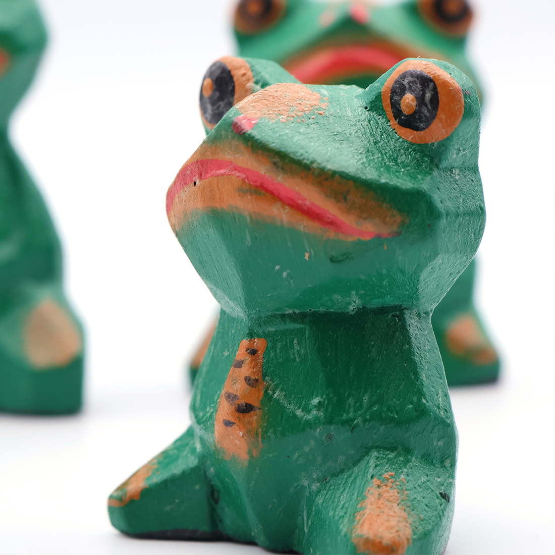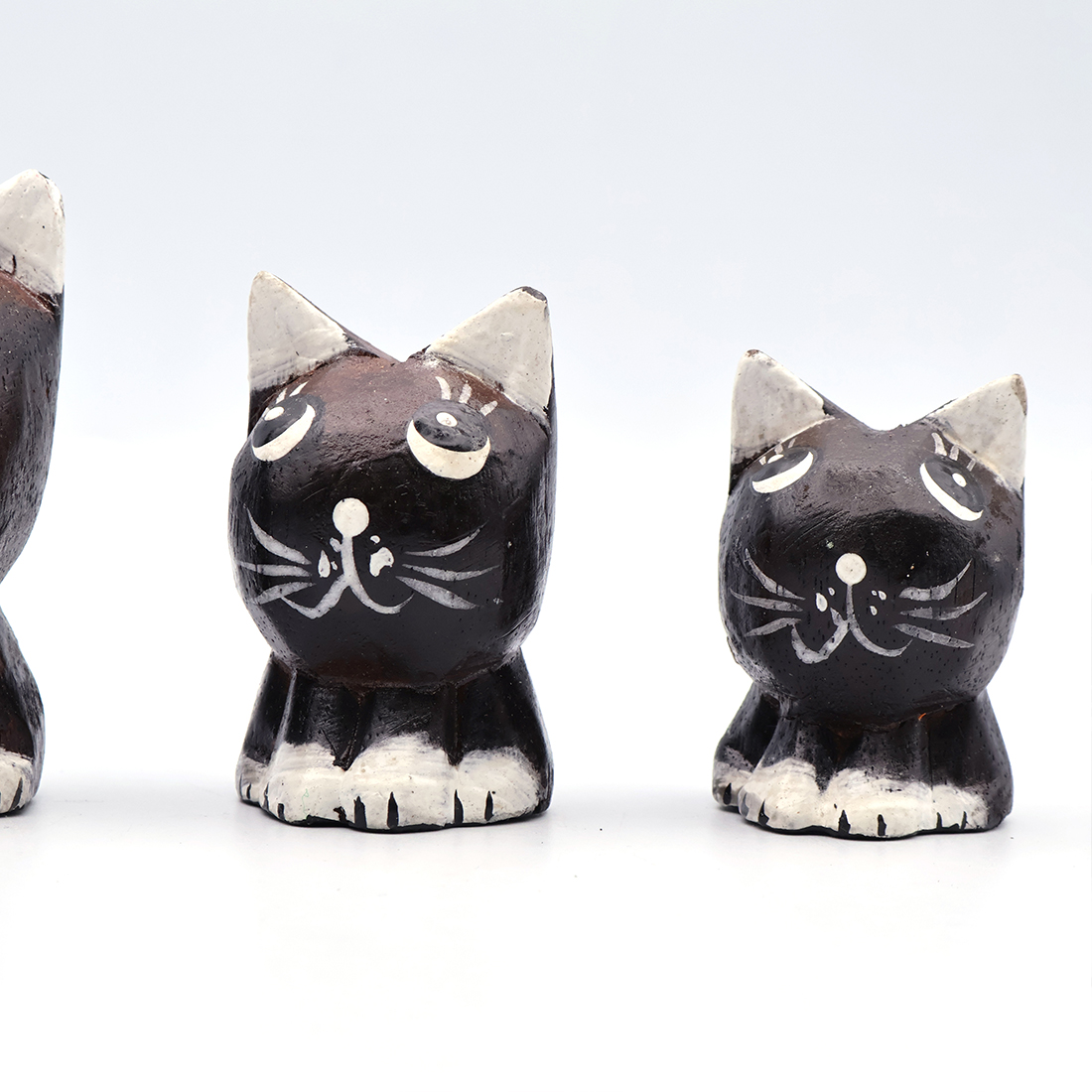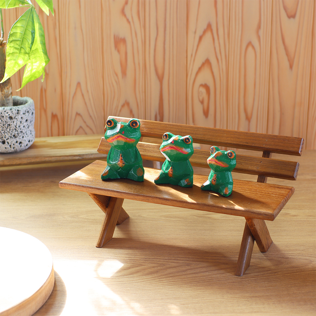 人気アニマルのクロネコとカエルの木彫オブジェ♪