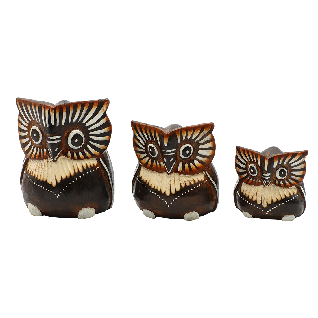フクロウをモチーフにした大中小の3個セットオブジェ。