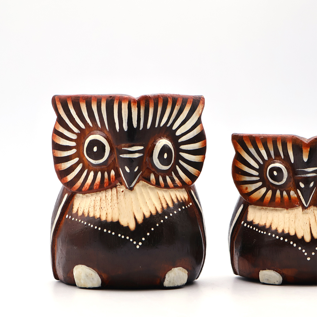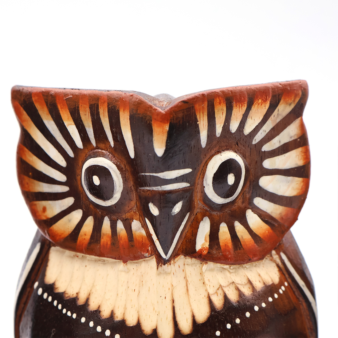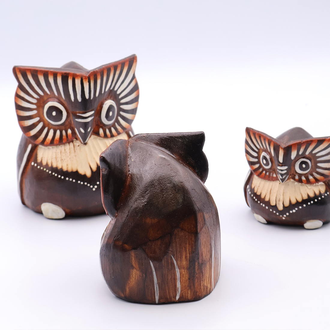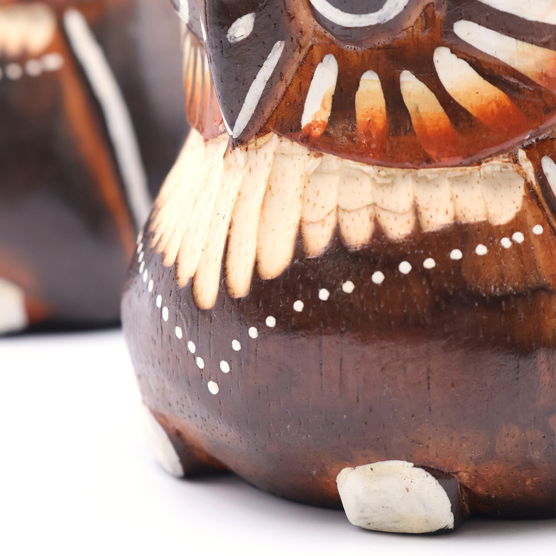 幸運を呼ぶフクロウモチーフの木彫オブジェ♪