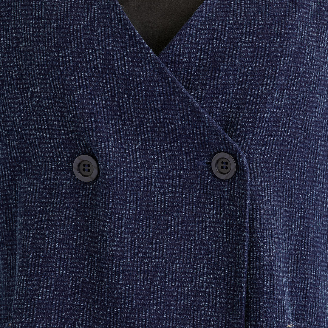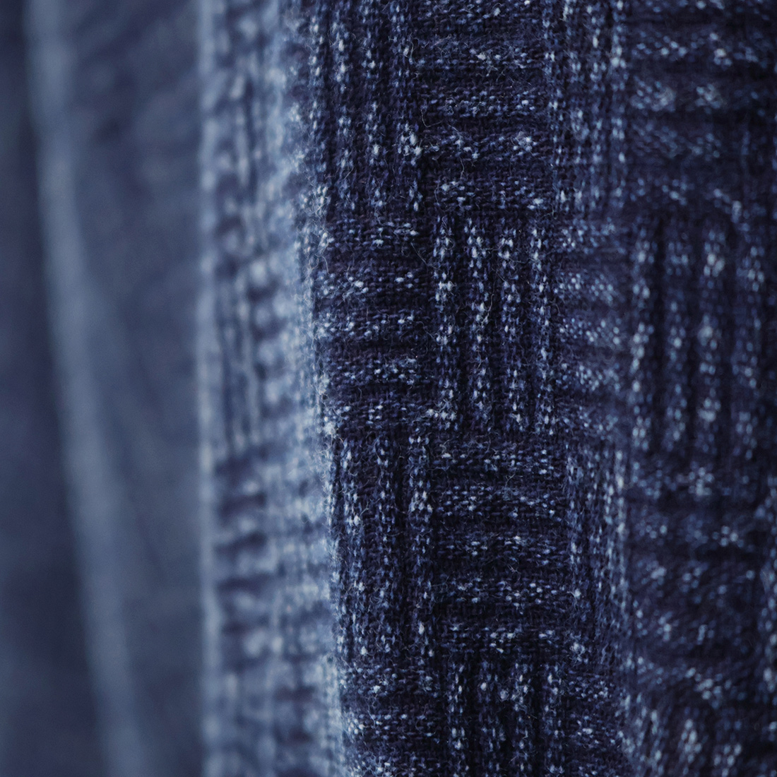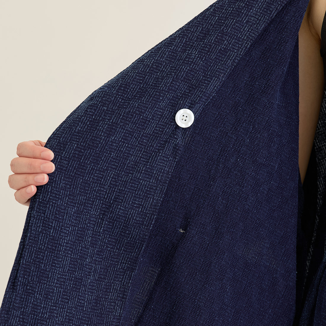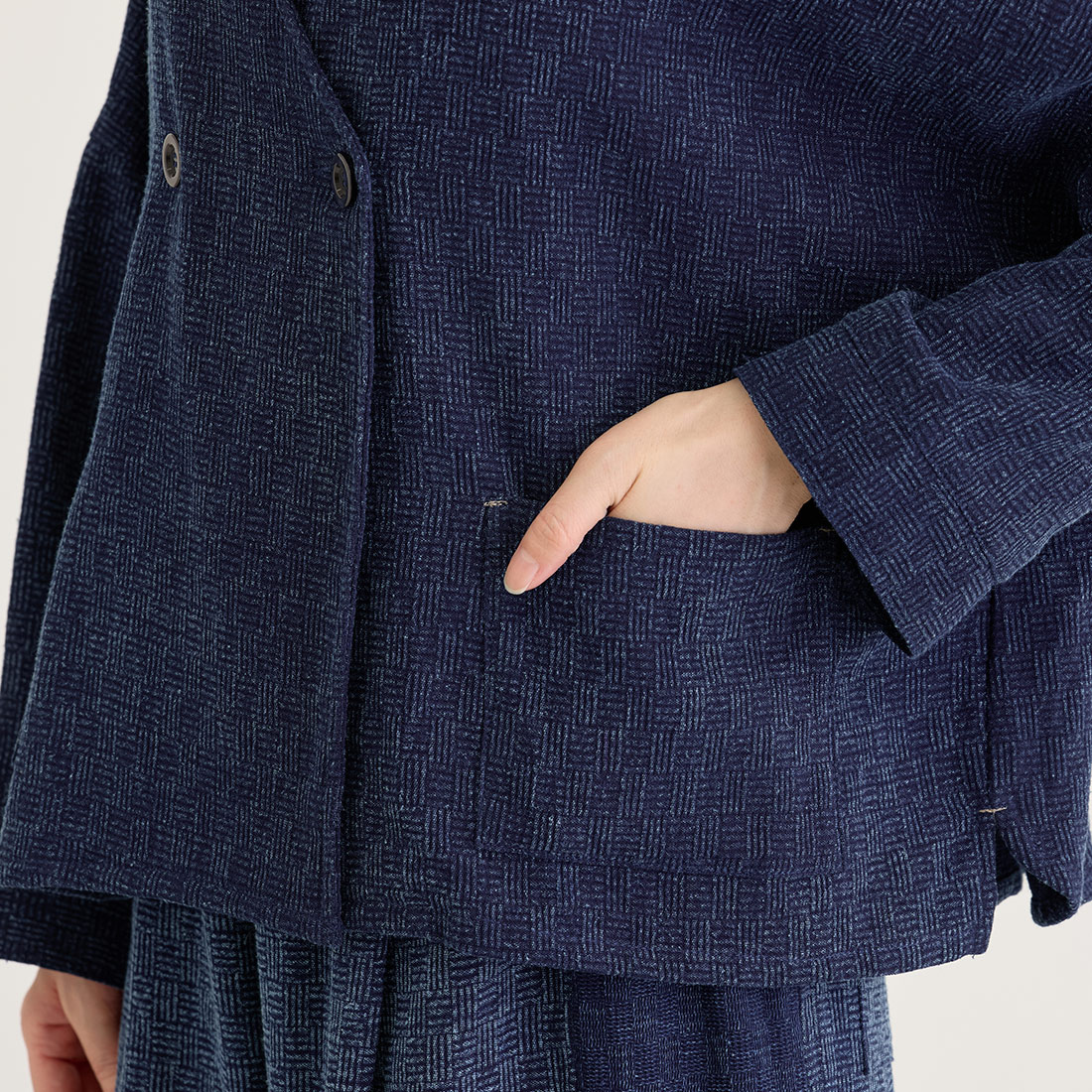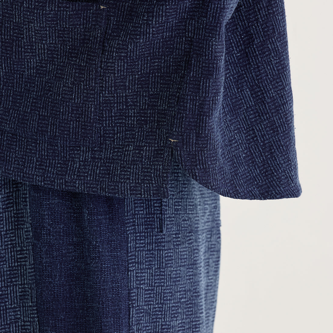 格子状の凹凸ある厚みの生地をインディゴ染めしました。