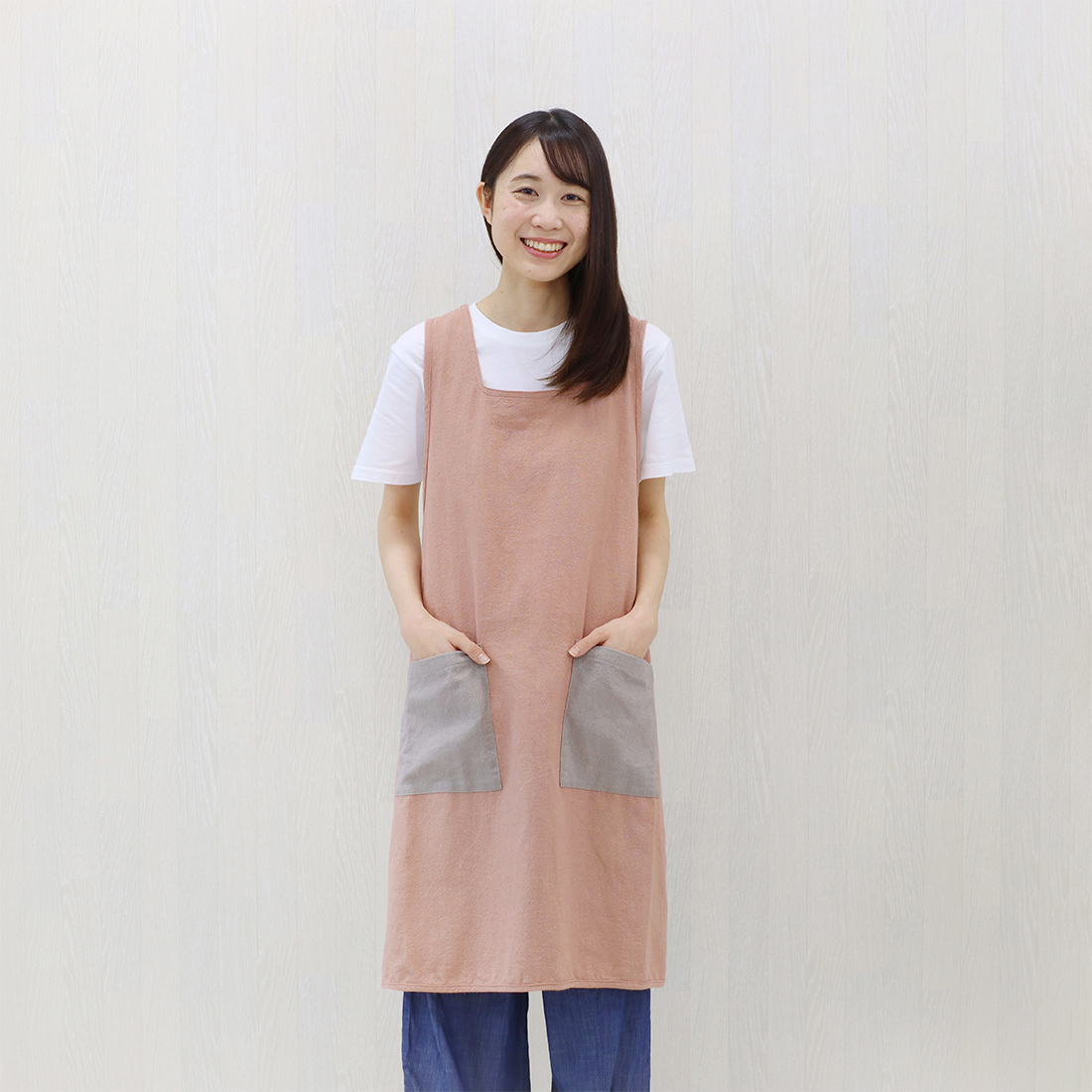 かぶるだけでOKなバッククロスタイプのエプロン。