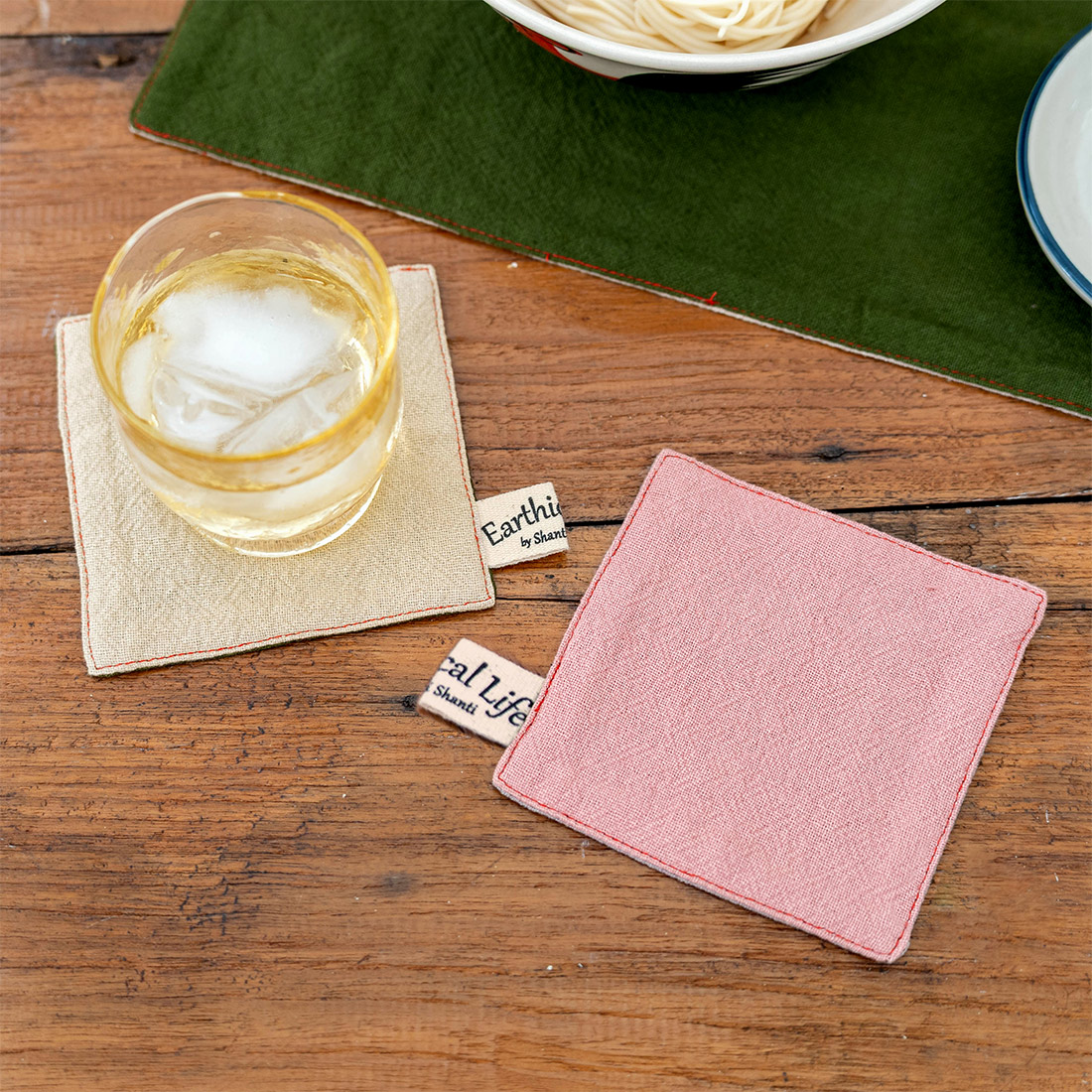 風合い豊かなタイ産コットンに、やさしいエンボス加工を施したキッチンアイテムが新登場!シンプルなデザインで食卓を引き立てます。食卓の気分に合わせて使い分けができる、バイカラーで揃えました。