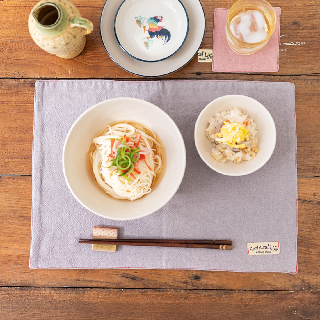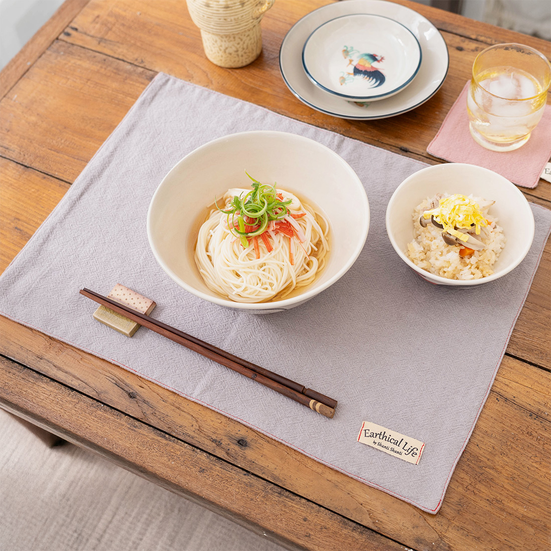 風合い豊かなタイ産コットンに、やさしいエンボス加工を施したキッチンアイテムが新登場!シンプルなデザインで食卓を引き立てます。食卓の気分に合わせて使い分けができる、バイカラーで揃えました。