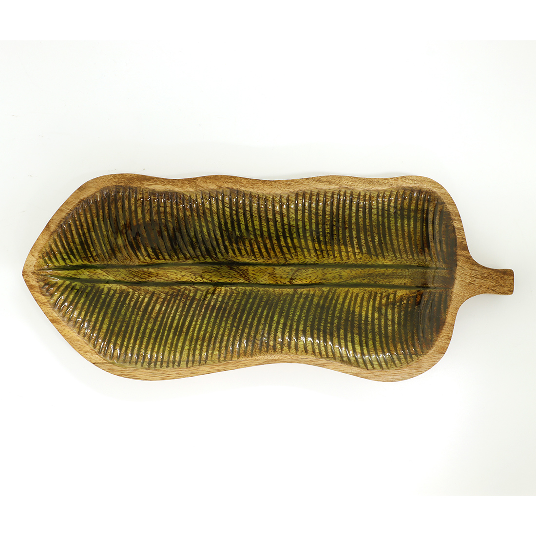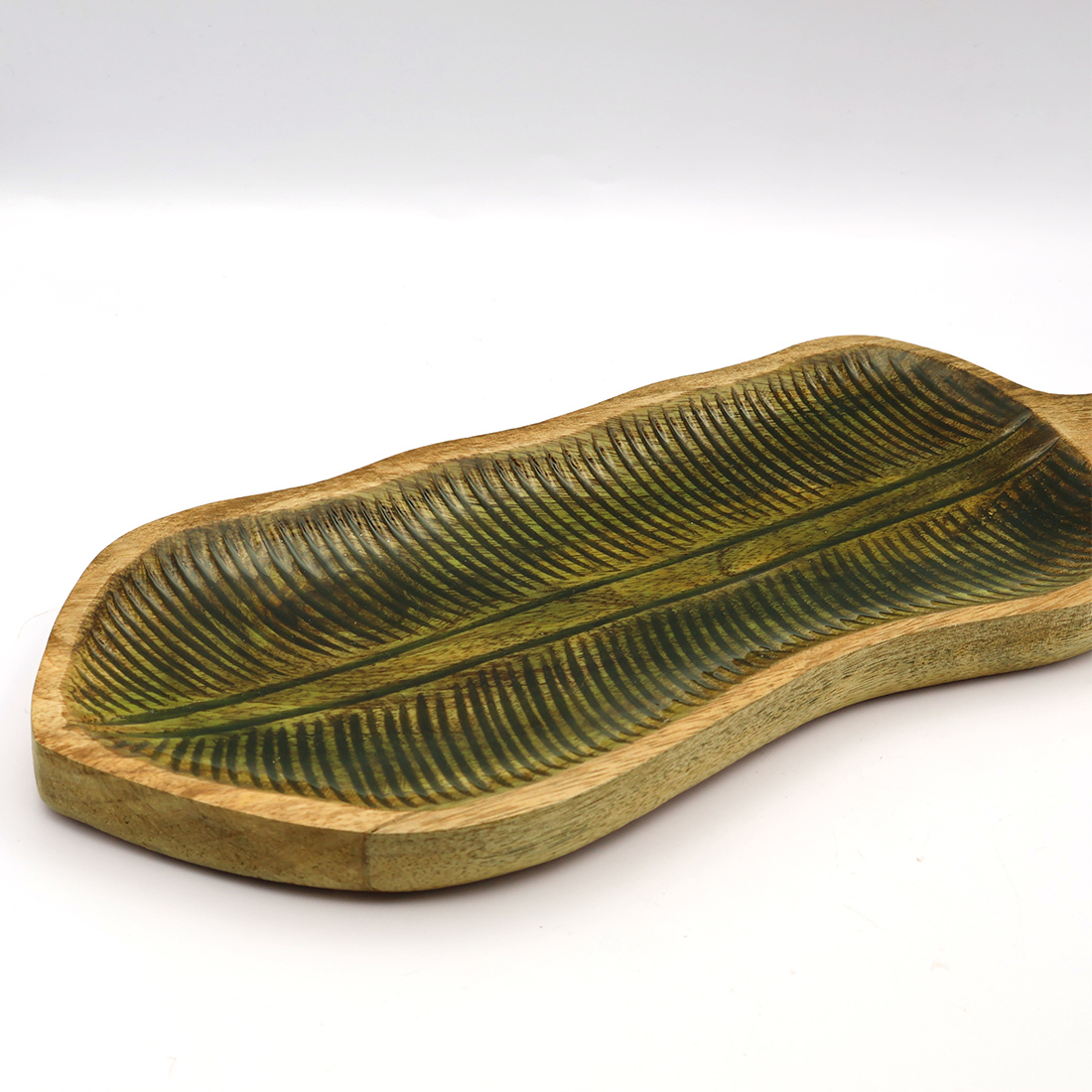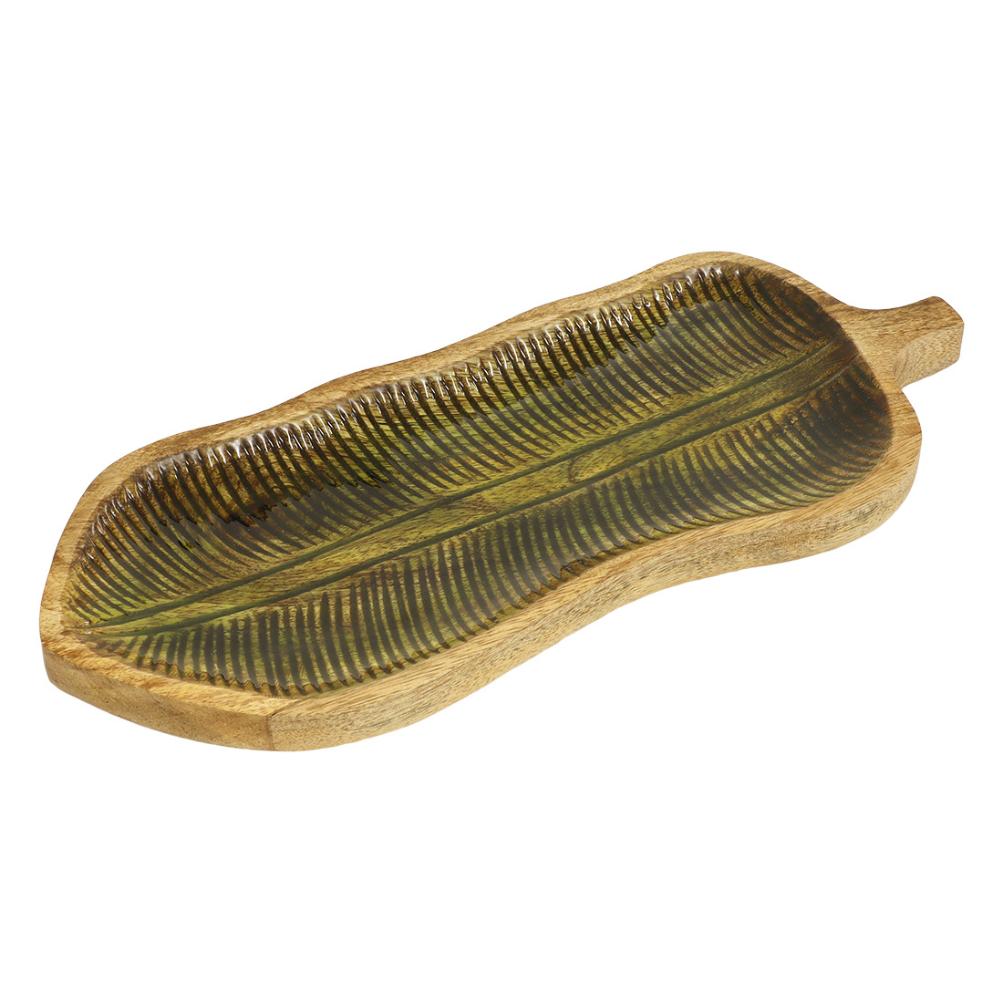 ハンディクラフト感あふれるウッドと涼やかなエナメル塗装がおしゃれなシリーズです。トロピカルムードが高まるリーフ型のトレーは使いやすい3サイズ展開。
