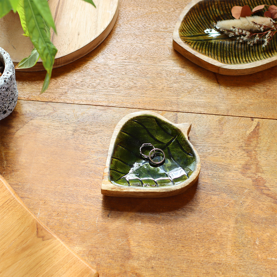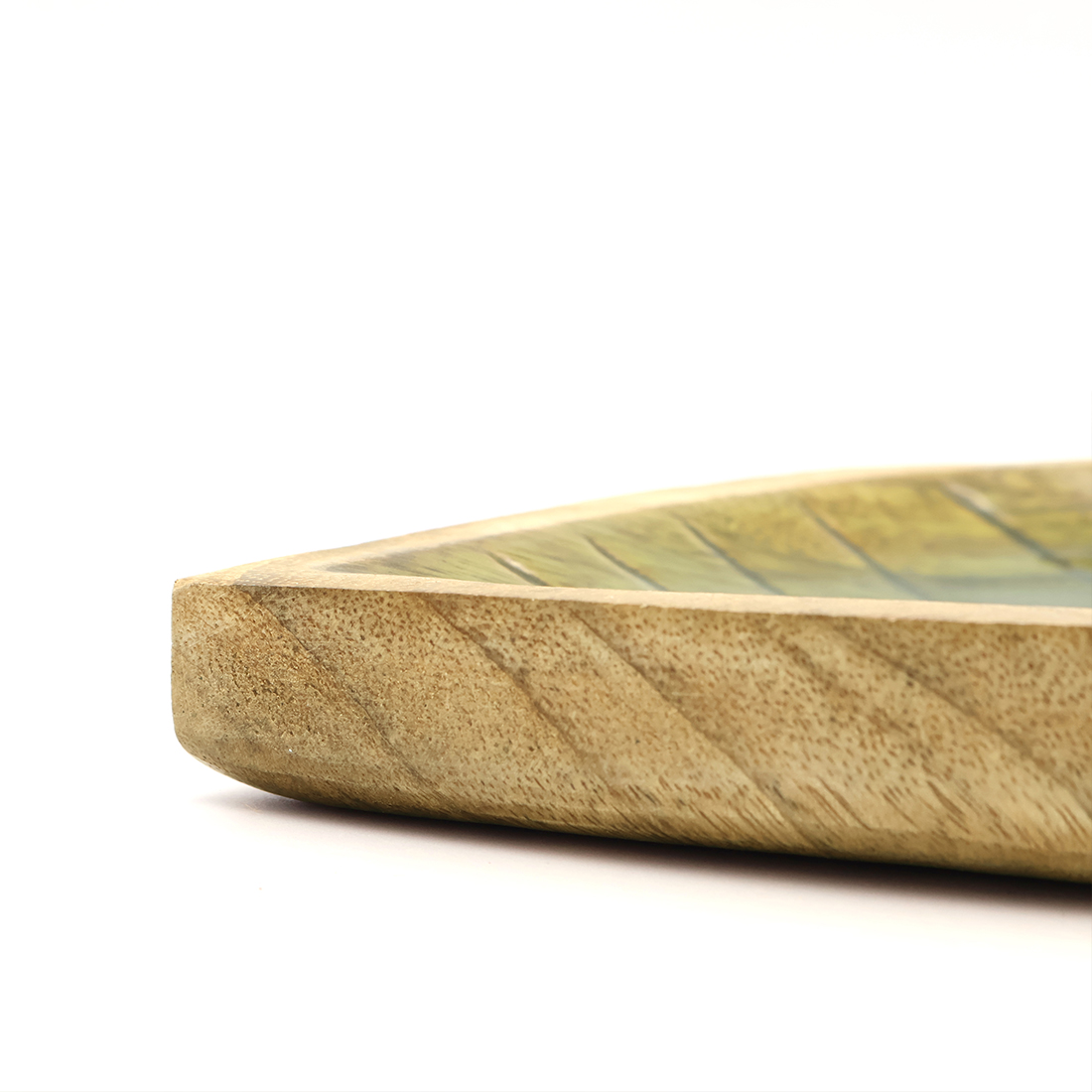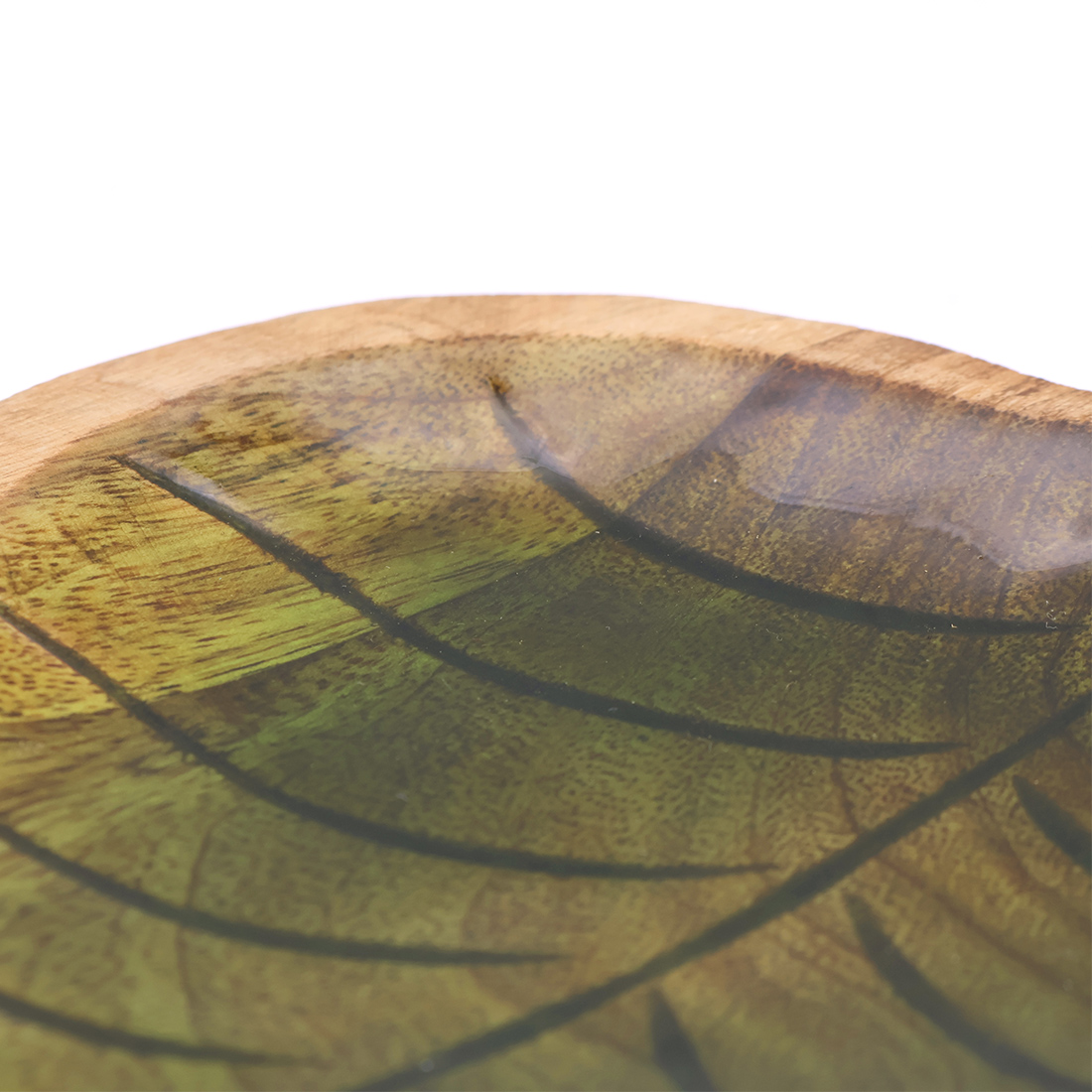 ハンディクラフト感あふれるウッドと涼やかなエナメル塗装がおしゃれなシリーズです。トロピカルムードが高まるリーフ型のトレーは使いやすい3サイズ展開。