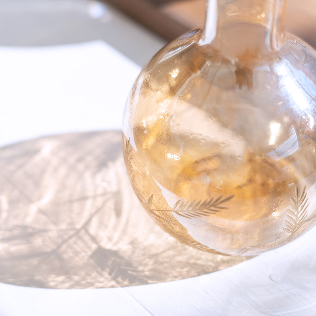 ラスター加工と切子で表現されたリーフ柄が繊細な、フラワーベースです。