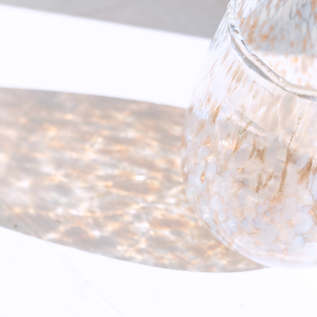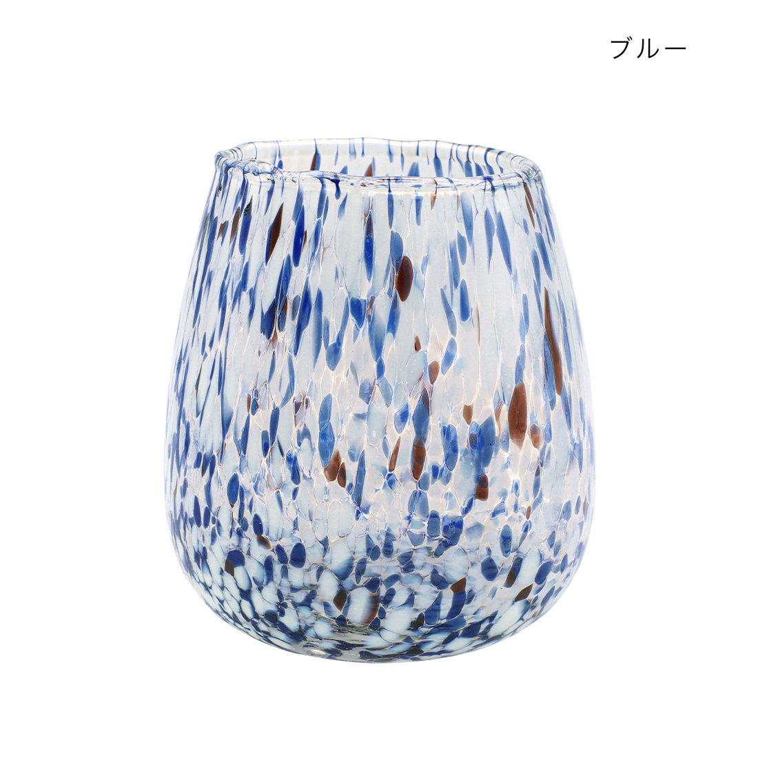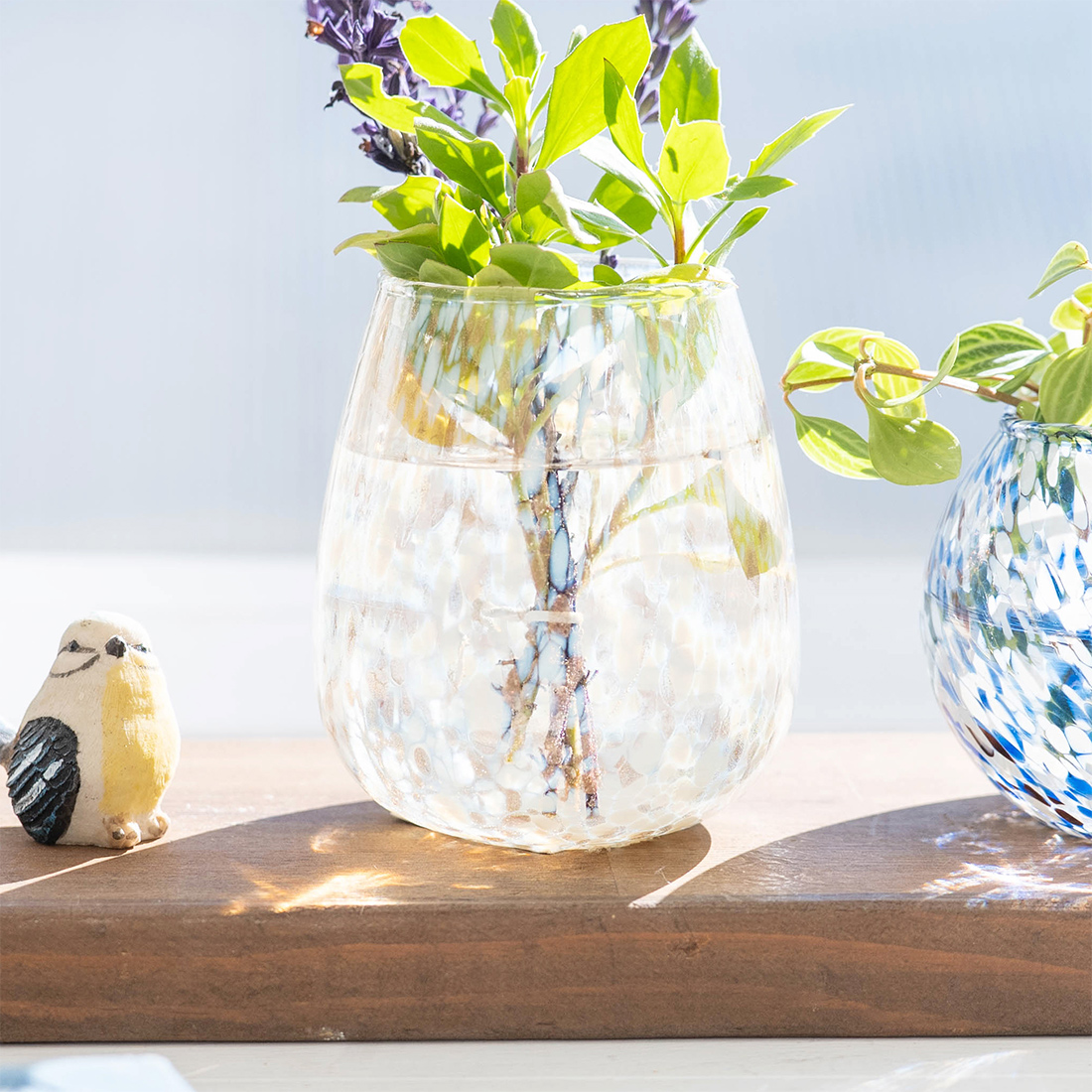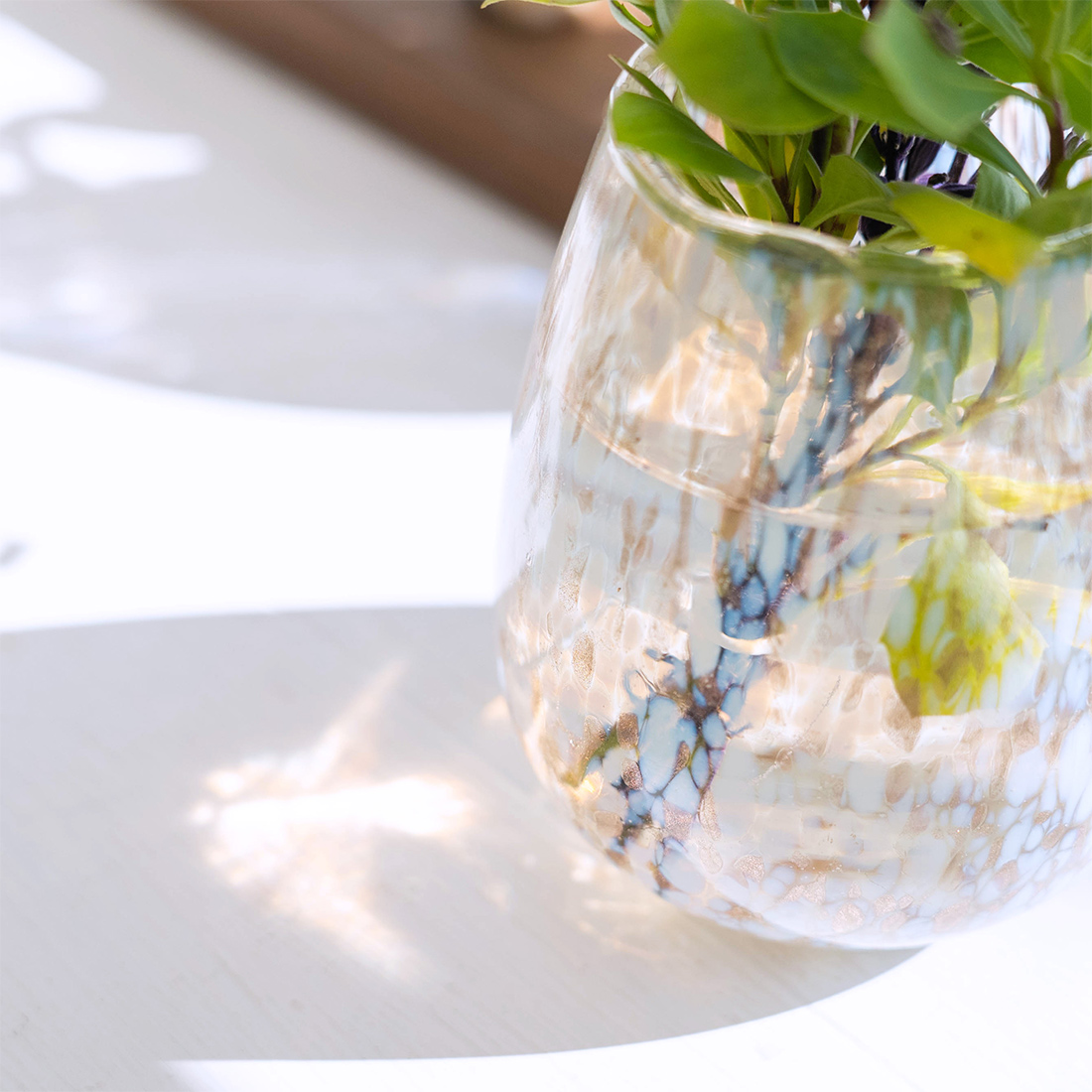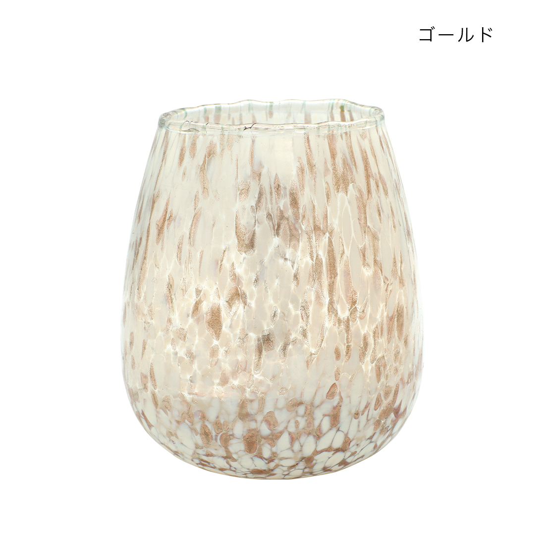 手吹きガラスで作られた、マーブル調の模様のランダム感がオンリーワンの魅力を持つ、フラワーベースです。