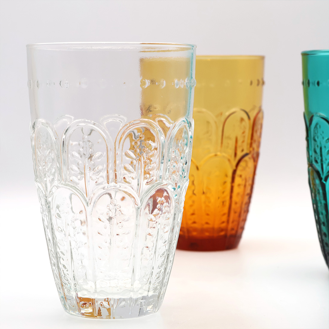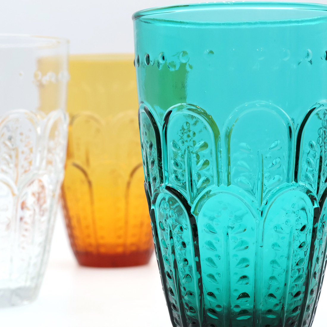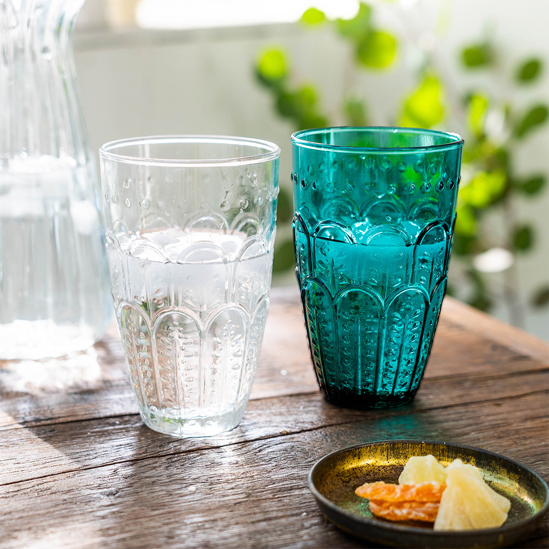 昨年大人気のエンボスグラスにトールサイズが登場。見た目にも涼し気で使いやすい3色を揃えました。テーブルの爽やかな雰囲気に、会話も楽しく弾みそう♪