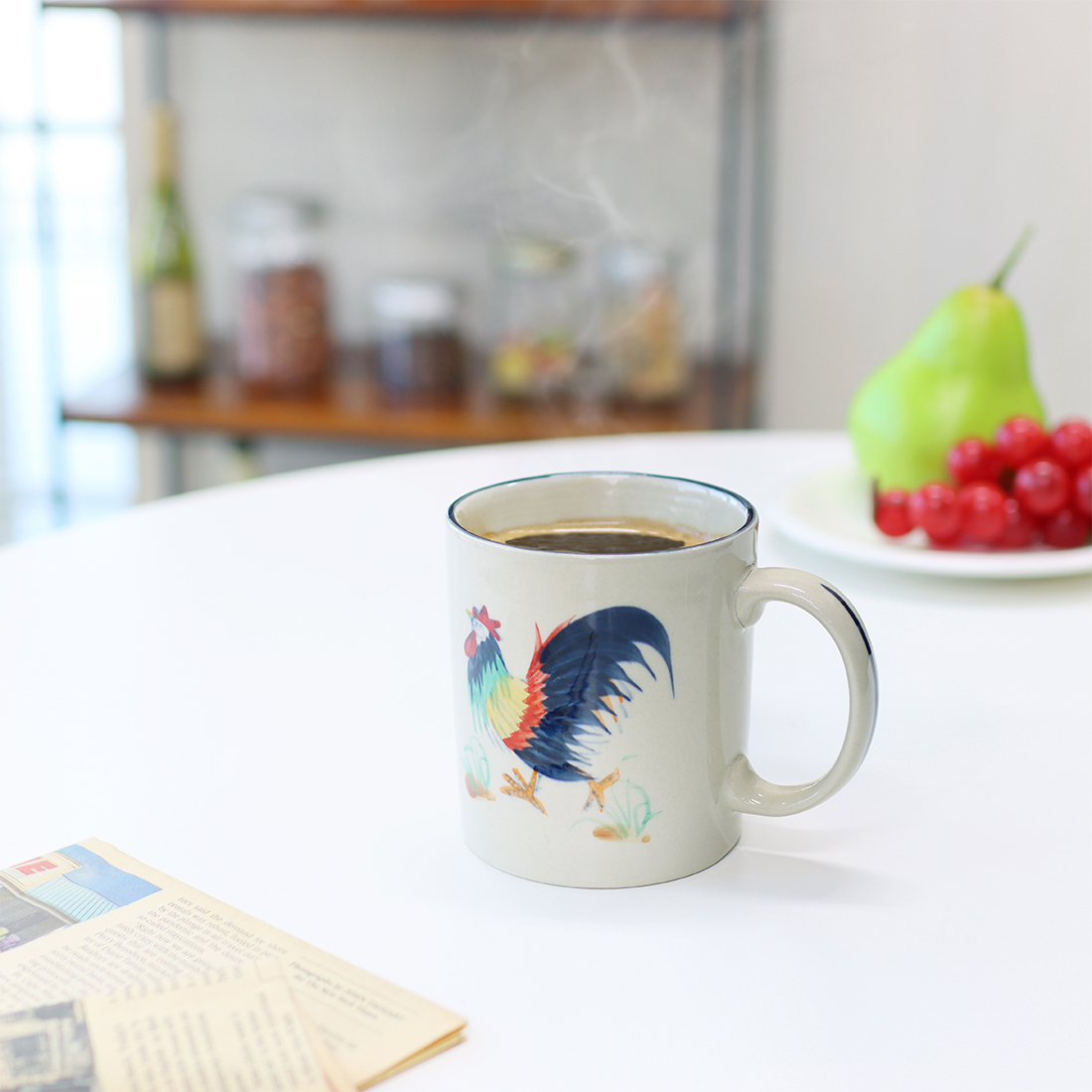 鮮やかな鶏のデザインが、食卓に彩を添えてくれます。