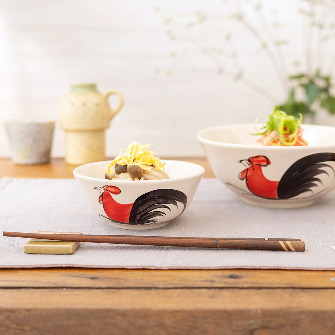 職人さんがひとつひとつ手描き・手彩色で仕上げた鶏柄が、素朴でかわいいカップ&ソーサーです。