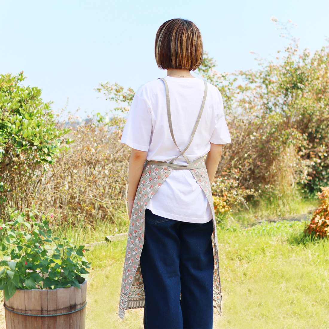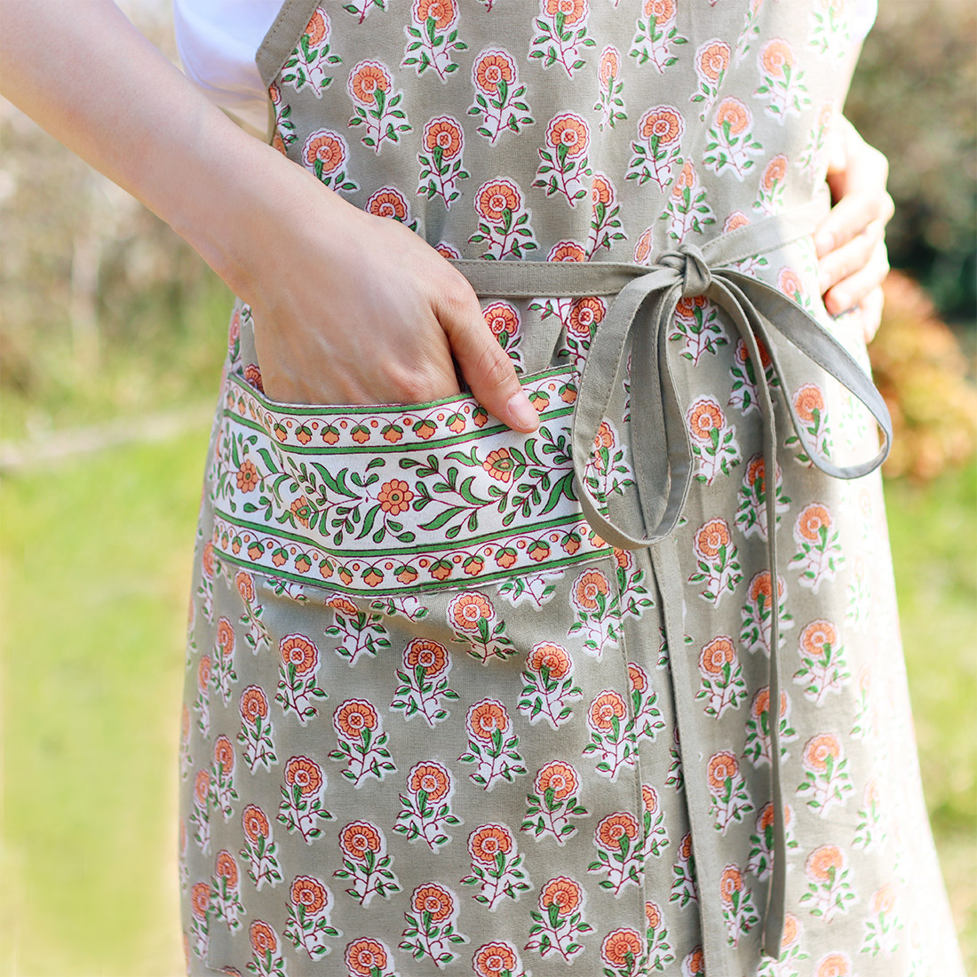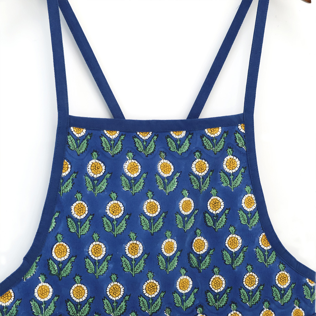 インドの伝統技法「ブロックプリント」でデザインされた、華やかなエプロン。