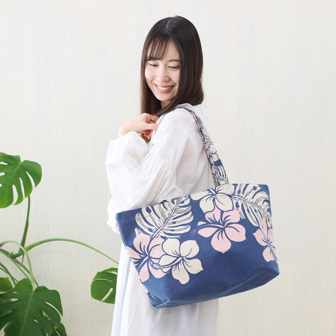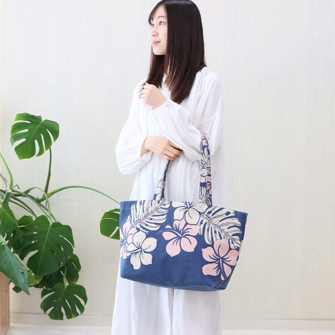 南国ムード満点!ハイビスカス柄が映える大容量キャンバストート