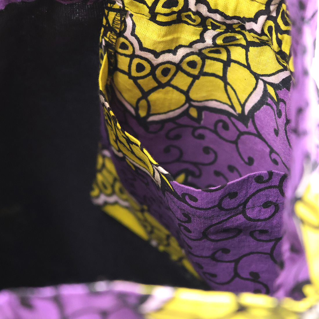 大き目の柄と鮮やかな色彩でコーディネートの主役になってくれるアフリカンプリントデザイン!軽量でかさばりにくく、日常使いはもちろん、旅行やレジャーシーンのサブバッグとしてもお使いいただけます