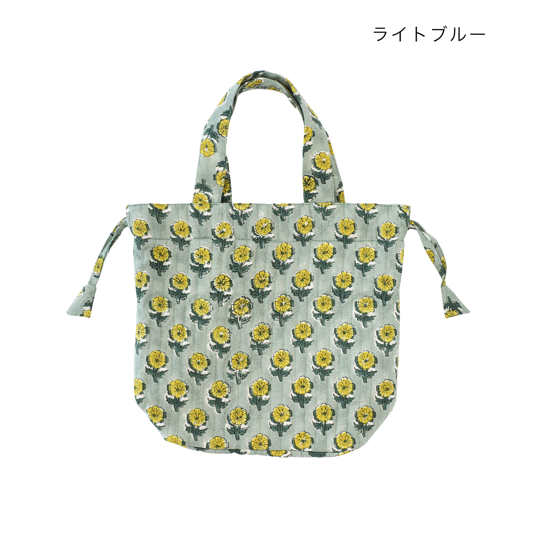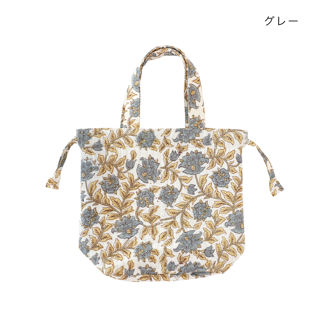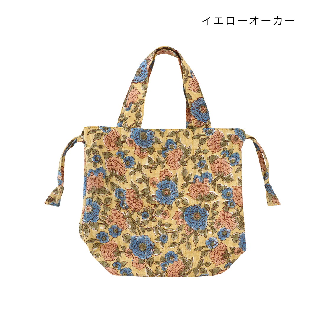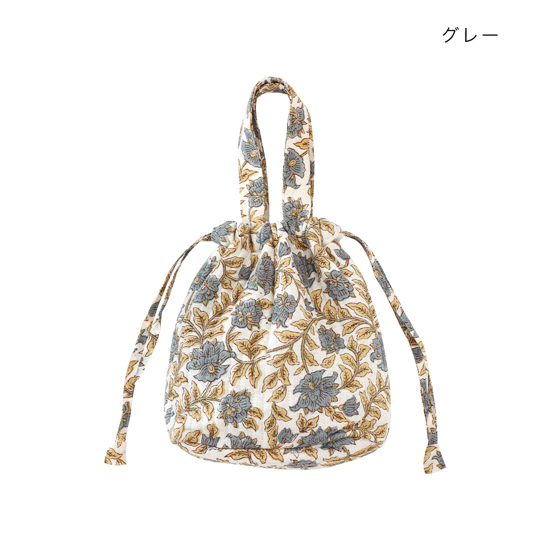 心癒される優しい花柄がフェミニンな印象のブロックプリン保冷巾着バッグ。