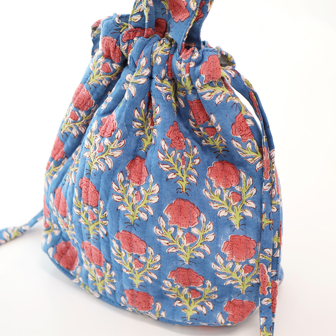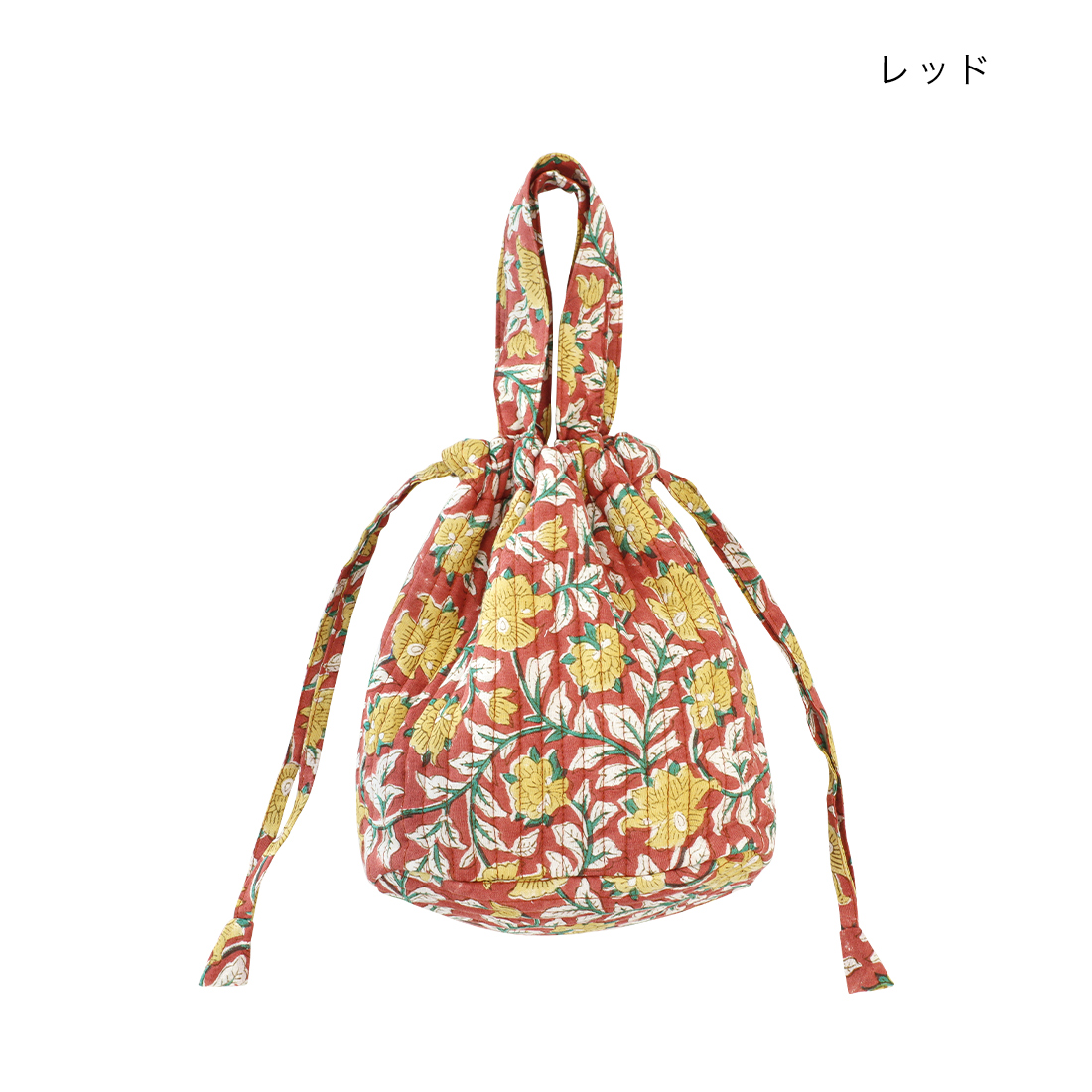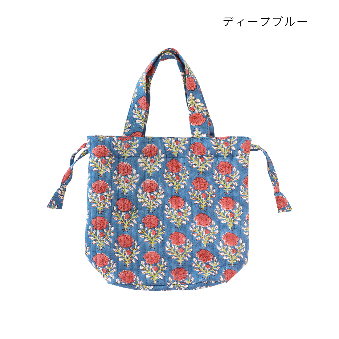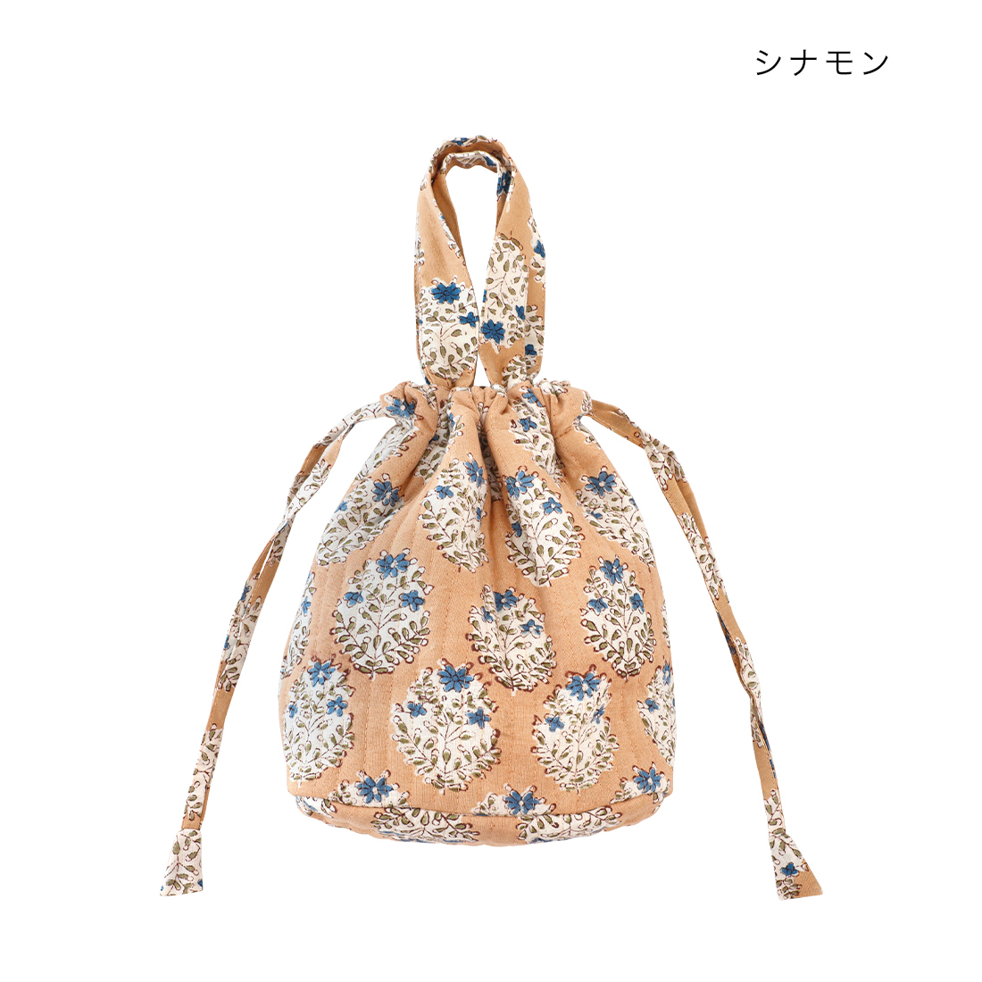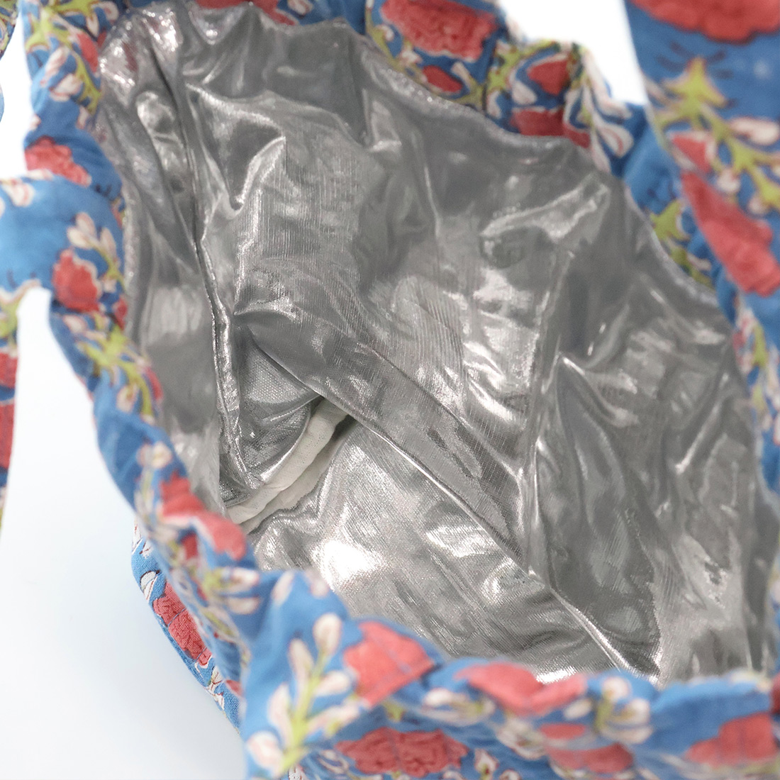 心癒される優しい花柄がフェミニンな印象のブロックプリン保冷巾着バッグ。