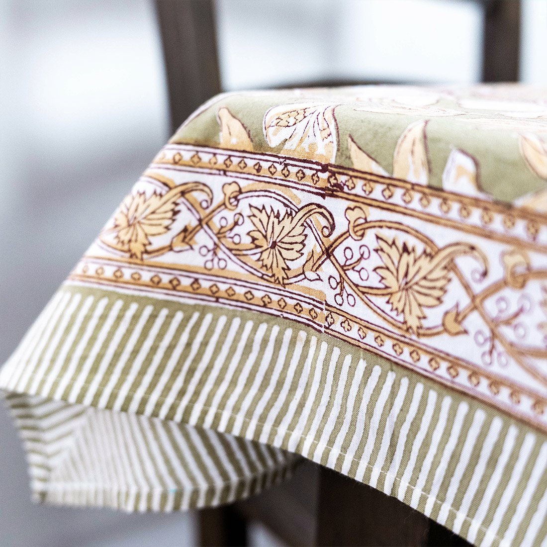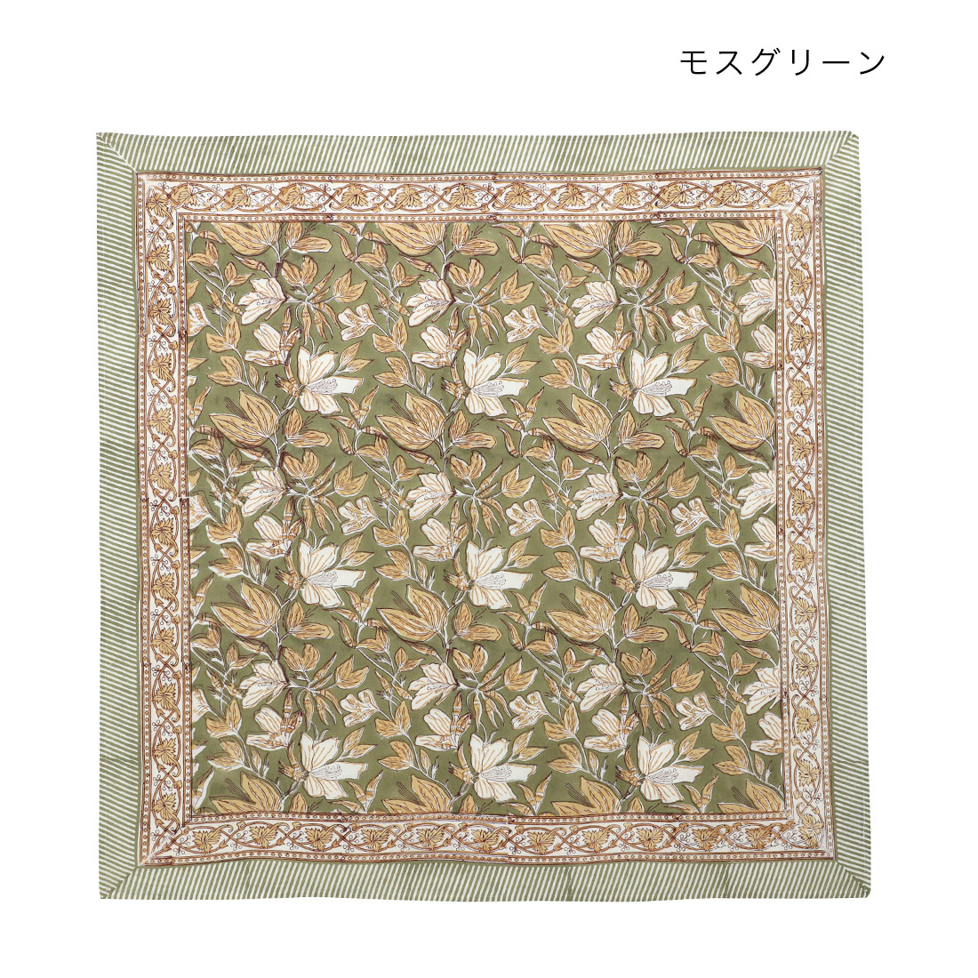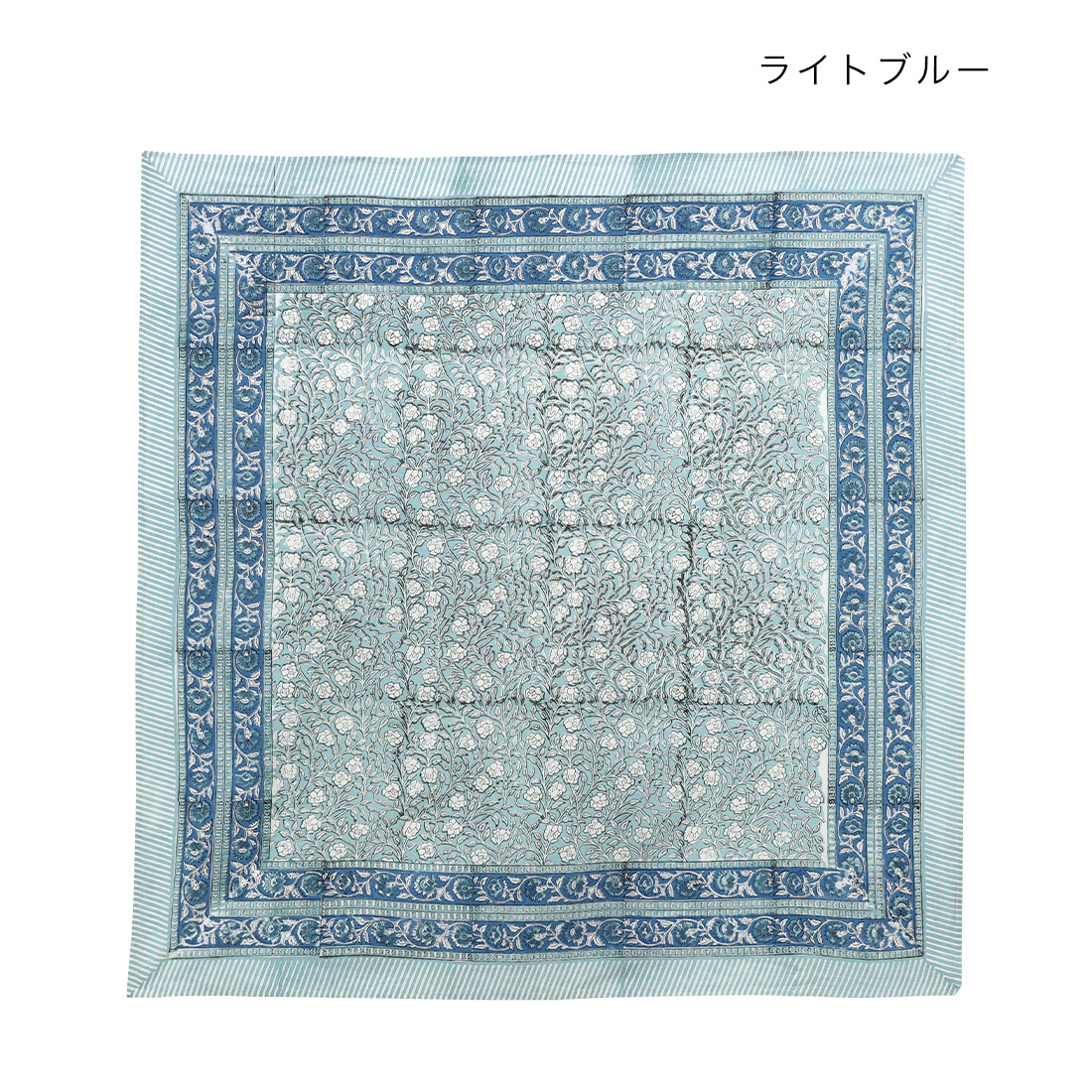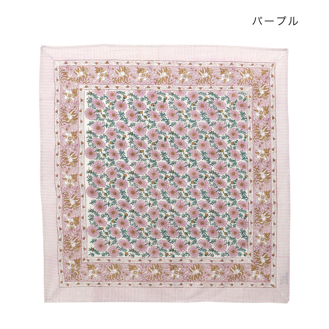 インドの伝統技法「ブロックプリント」でデザインされた、花柄のクロス。