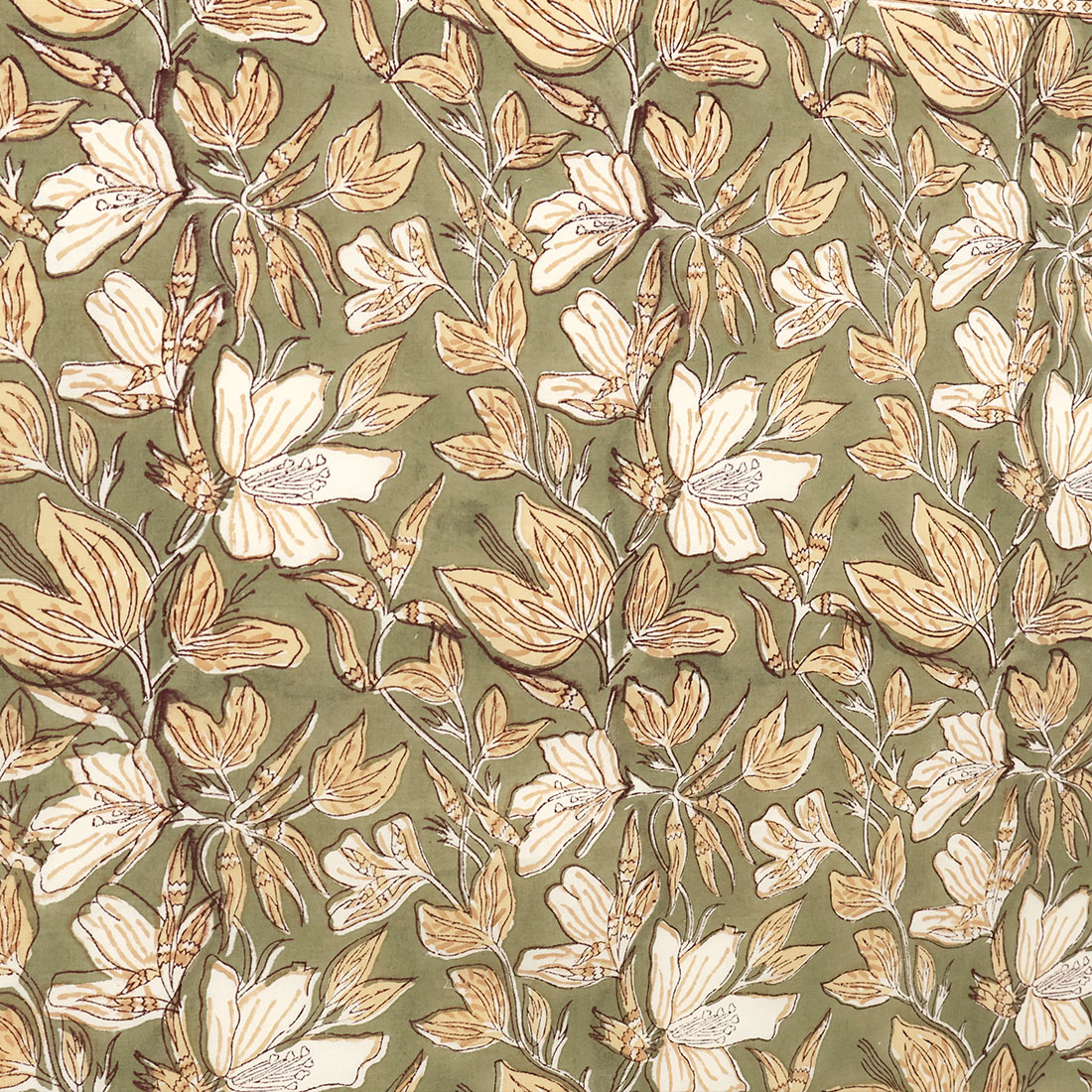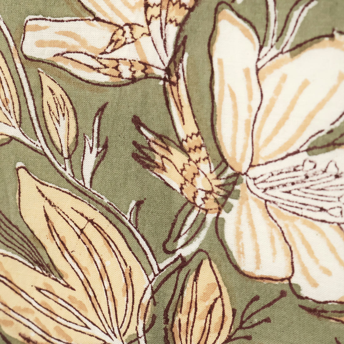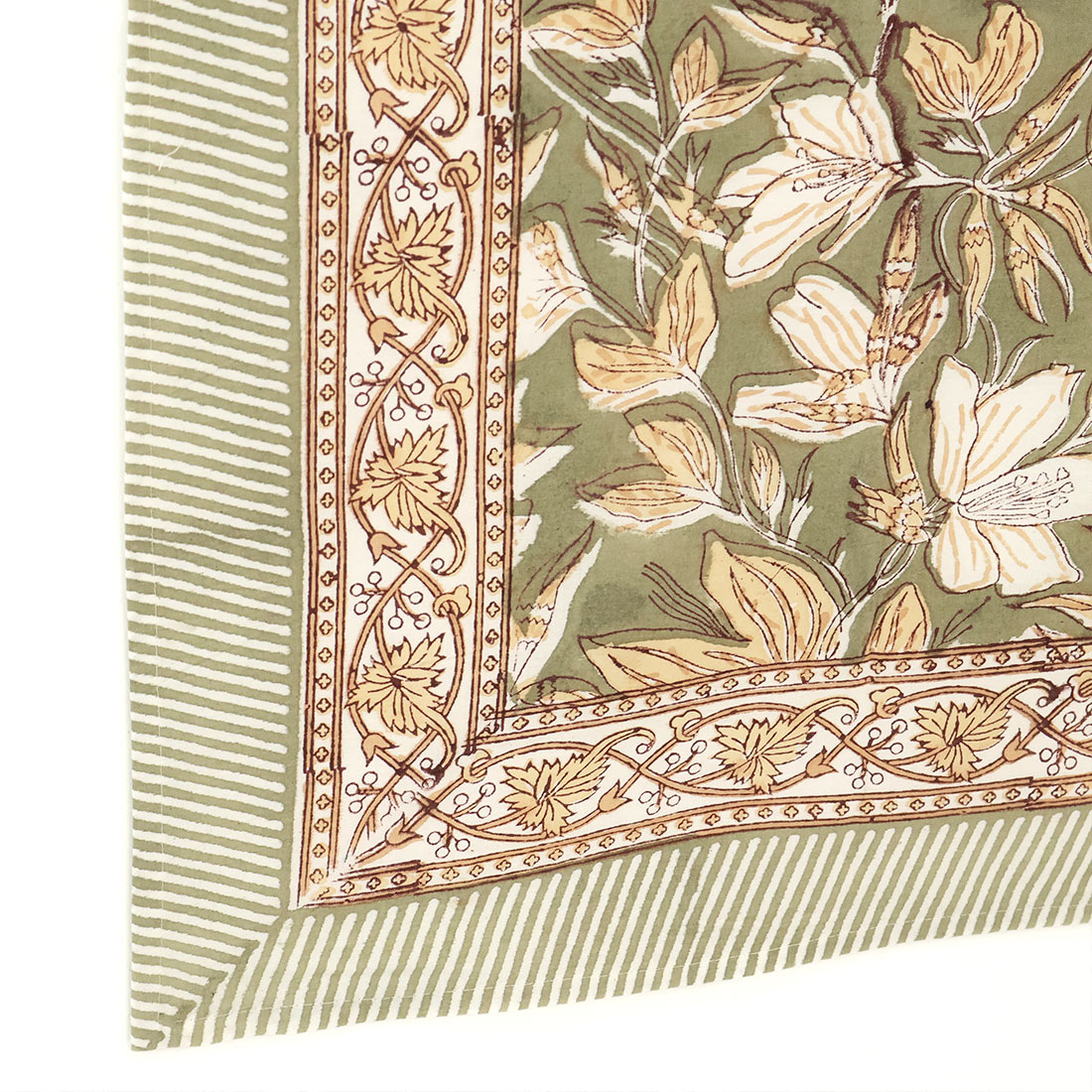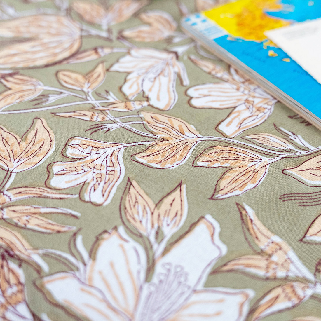 インドの伝統技法「ブロックプリント」でデザインされた、花柄のクロス。