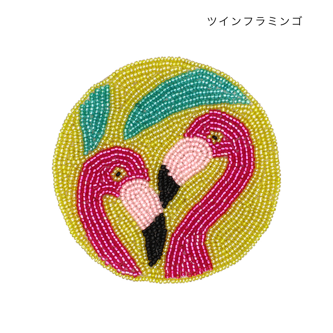 オオハシとフラミンゴのトロピカルムード感じるビーズコースター。