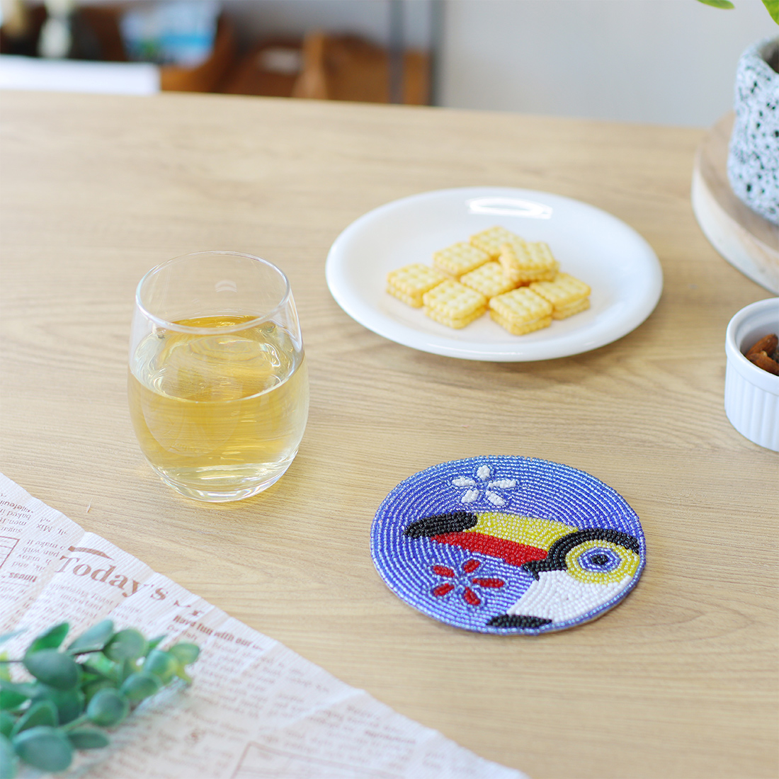 南国の鳥モチーフが食卓を彩る、カラフルなビーズコースター