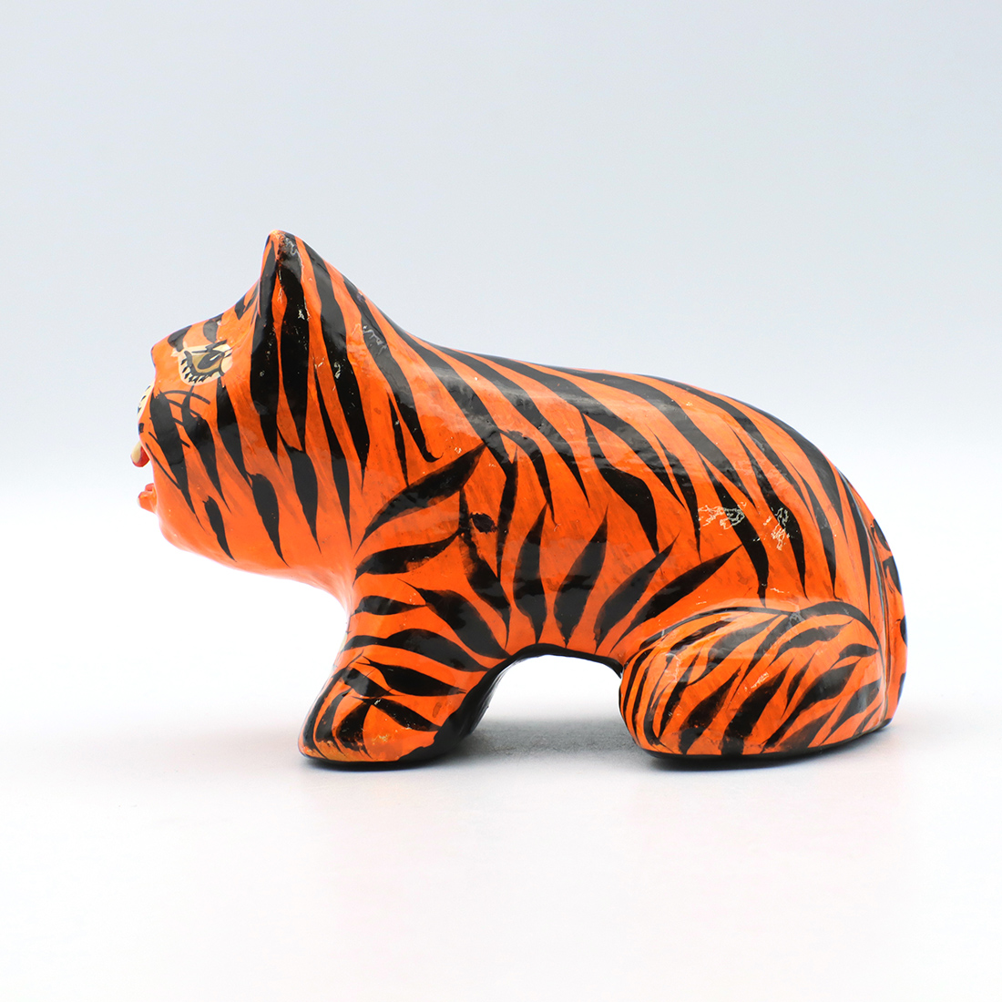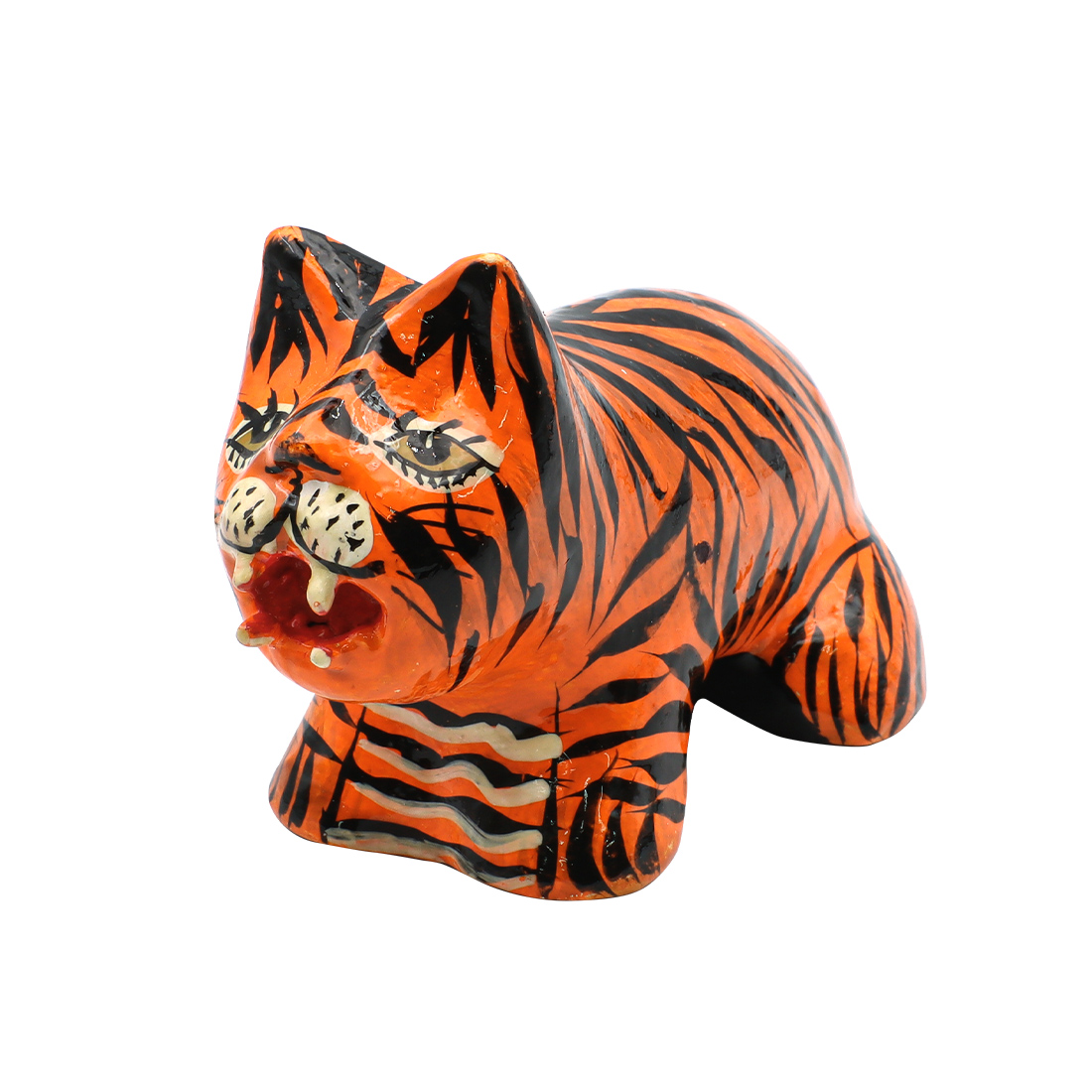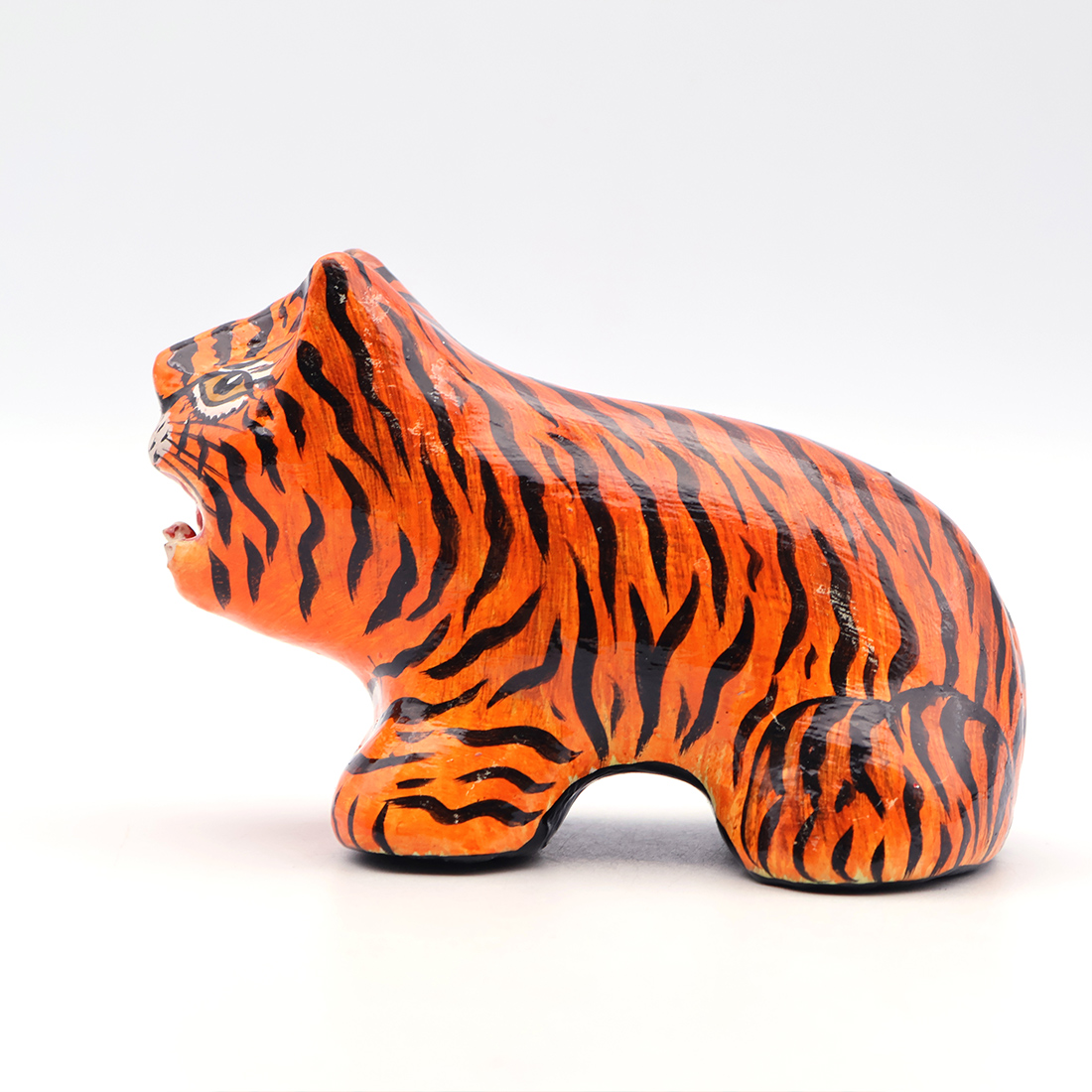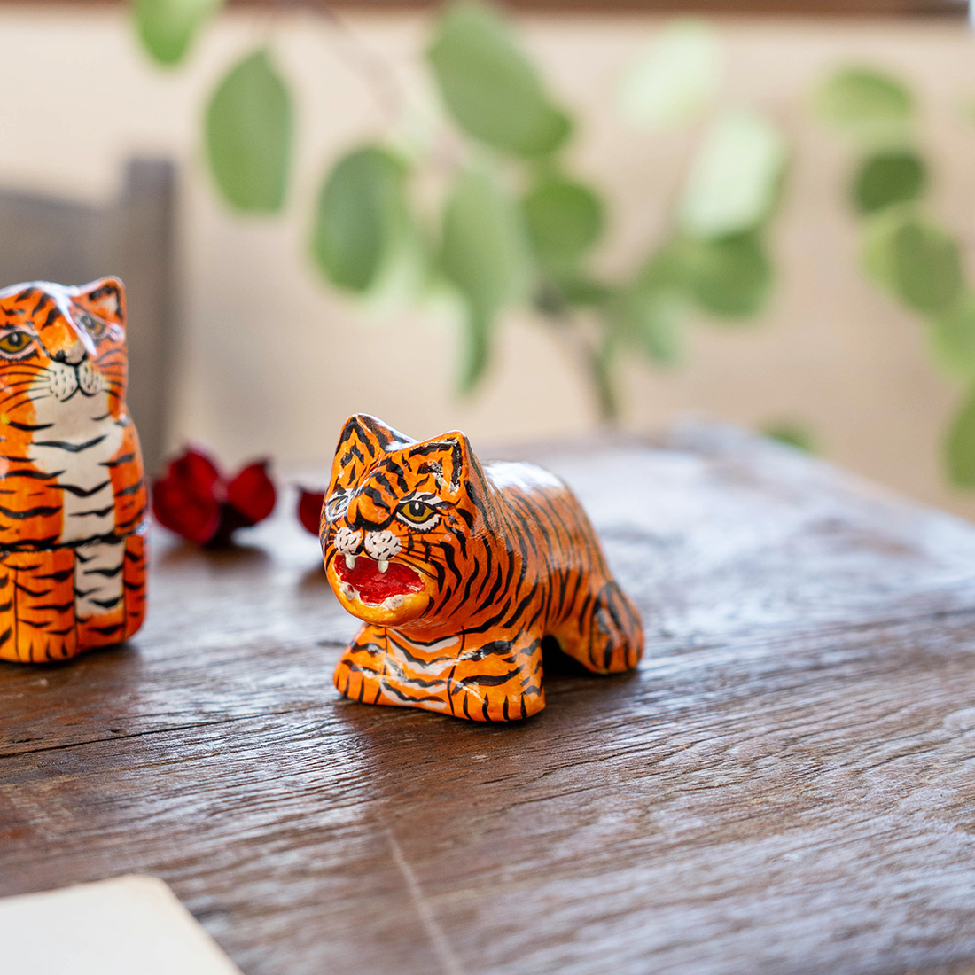口を開けた愛嬌のある表情が印象的なトラの置物。