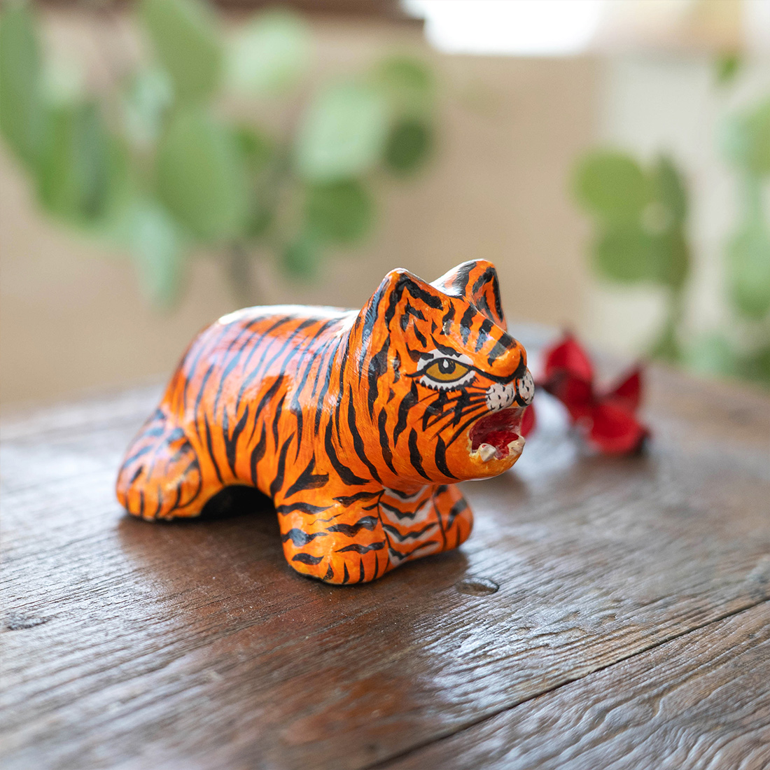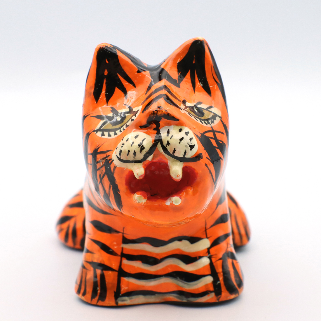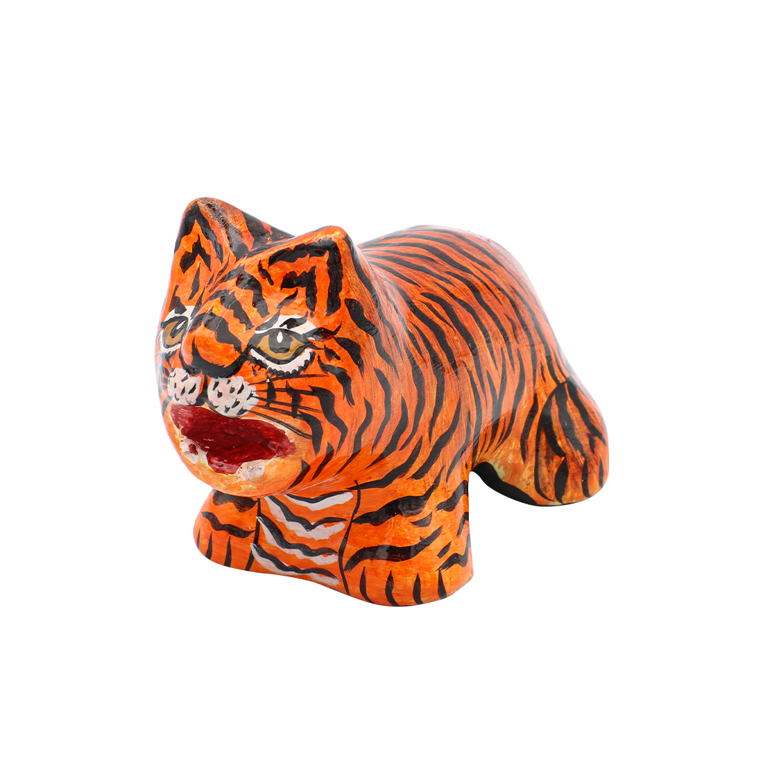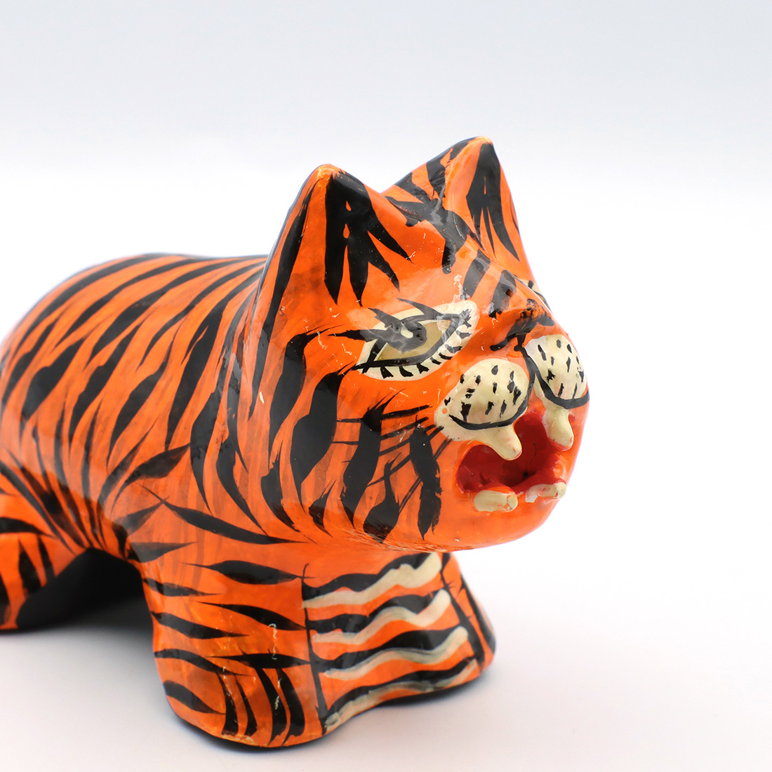 口を開けた愛嬌のある表情が印象的なトラの置物。