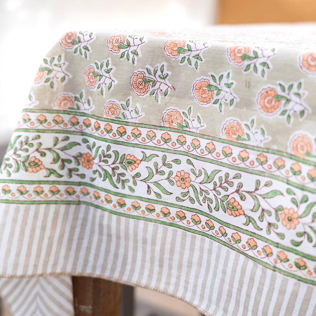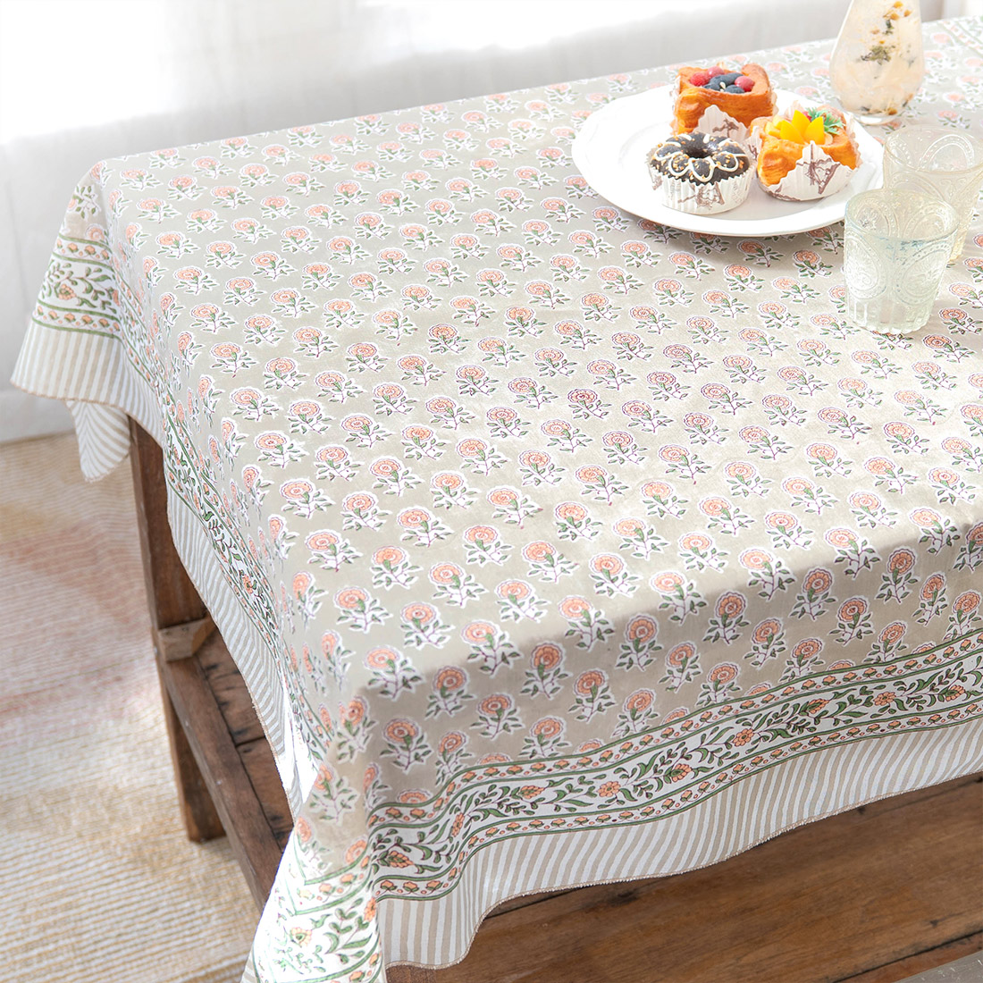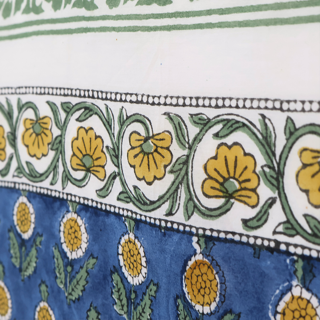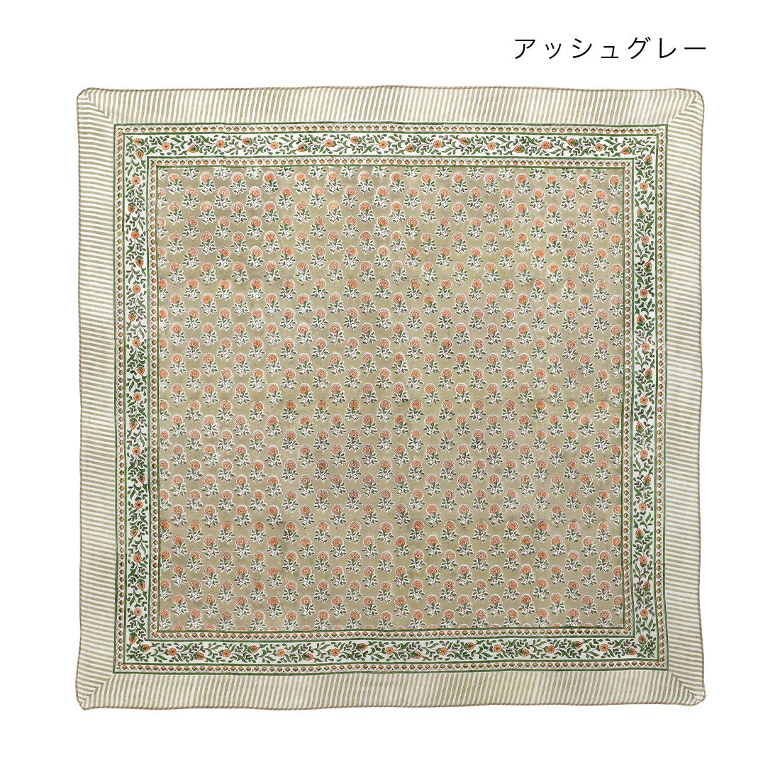 素朴で愛らしい花柄の生地はインドの伝統技法「ブロックプリント」でデザインされています。