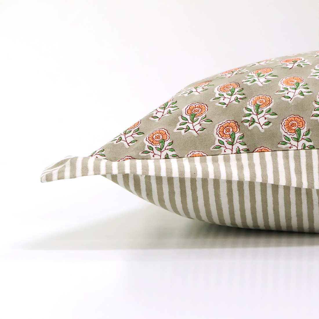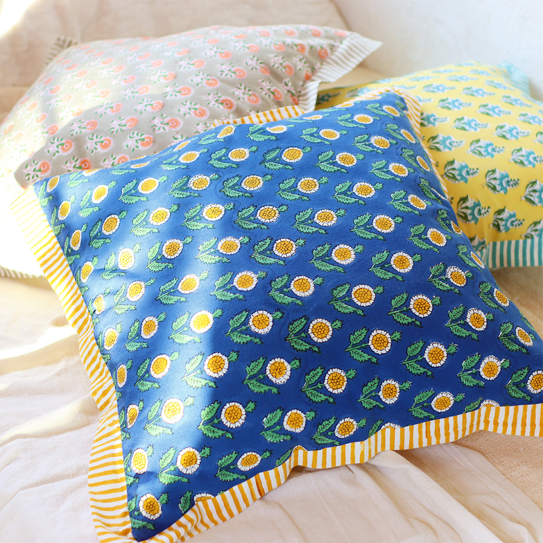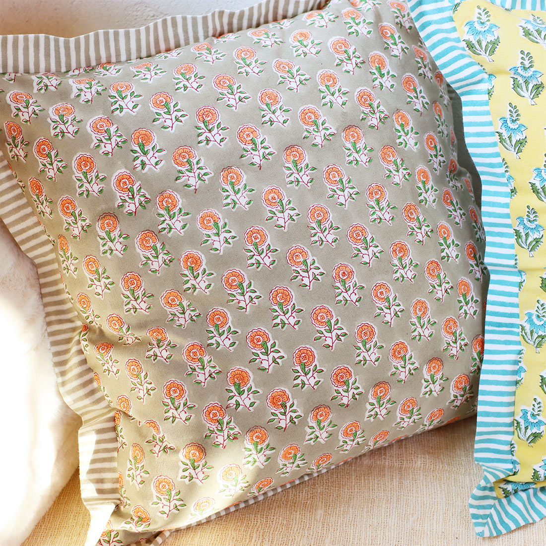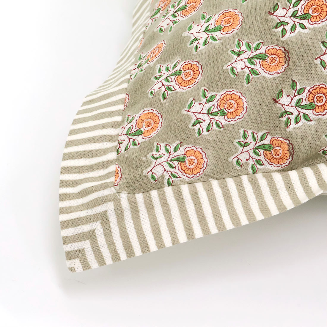 ストライプのパイピングがアクセントのクッションカバー