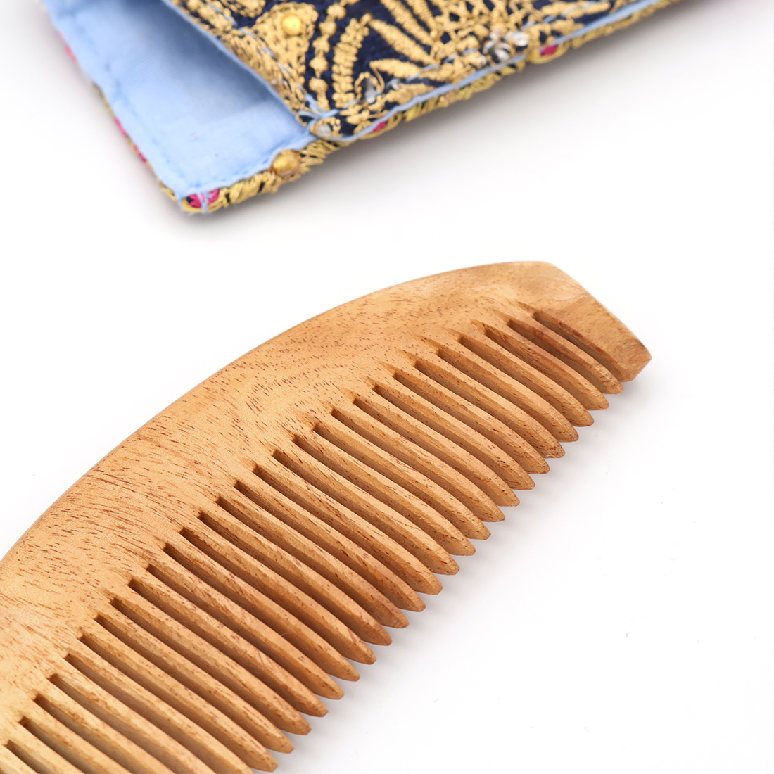 アーユルヴェーダでも重宝されているニームの樹で作られたマッサージ効果もあるコーム。マスタードオイル仕上げで美髪効果も期待できます。