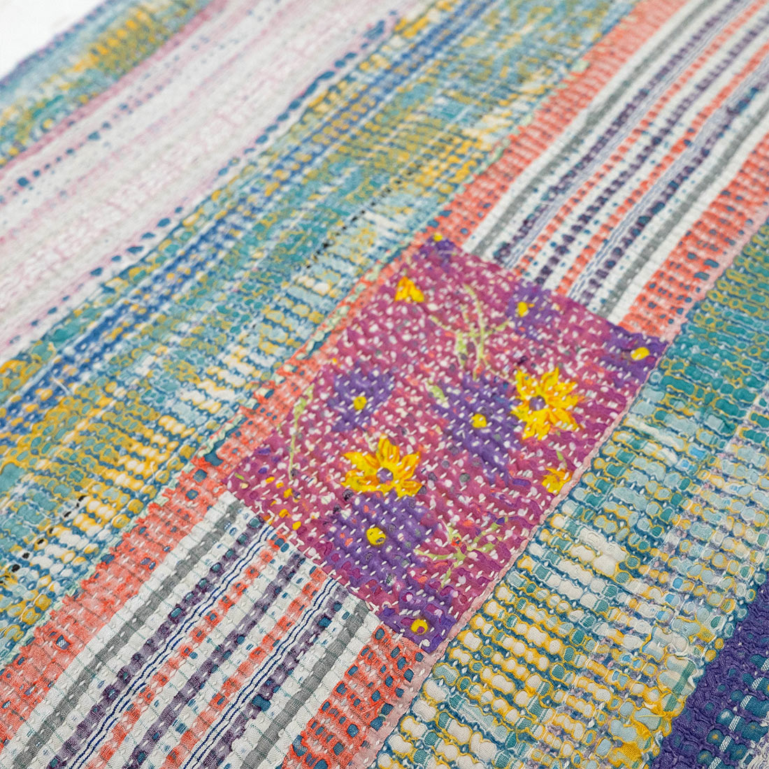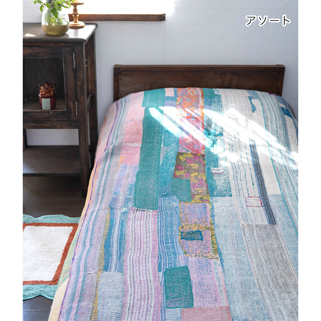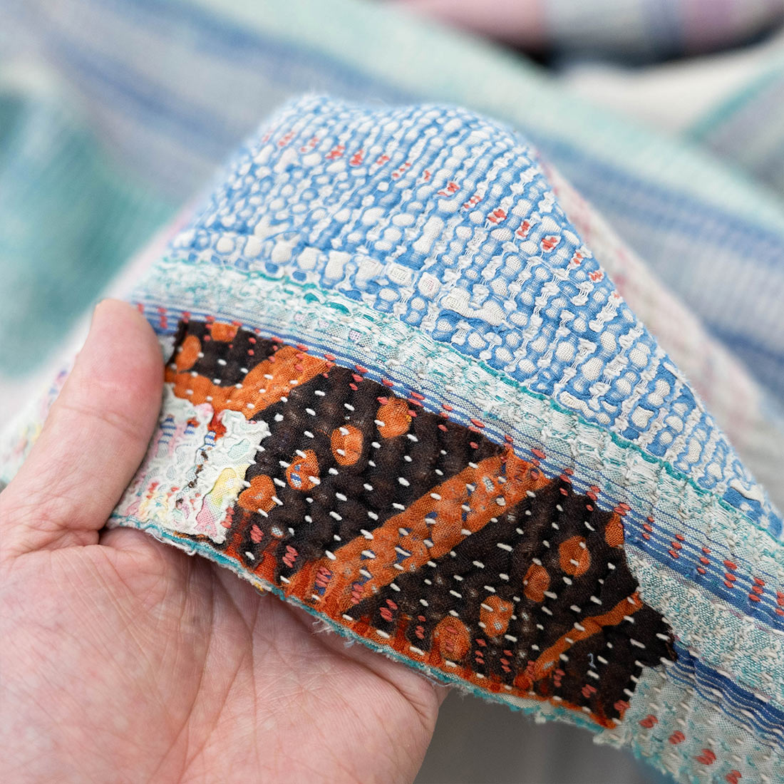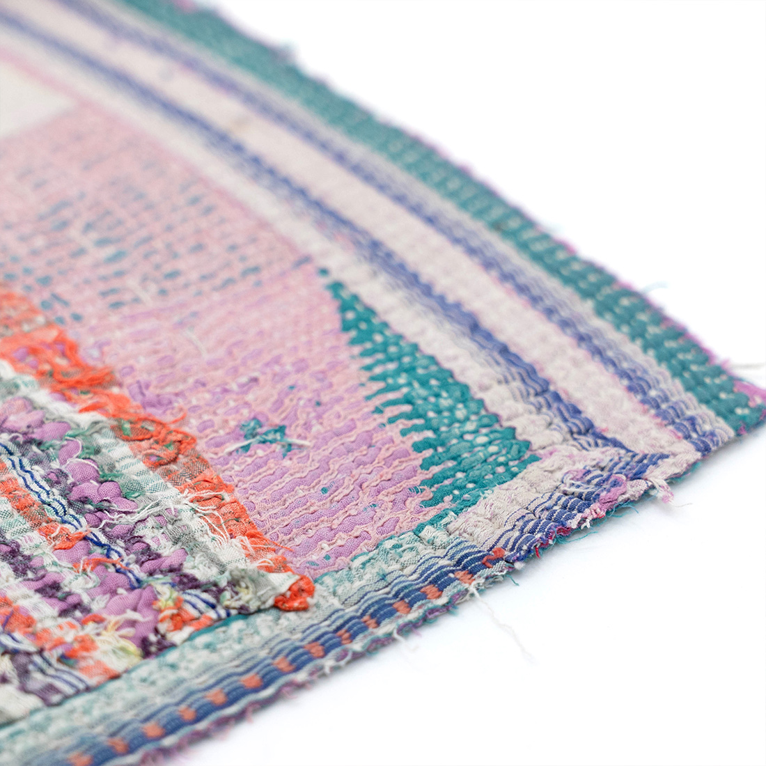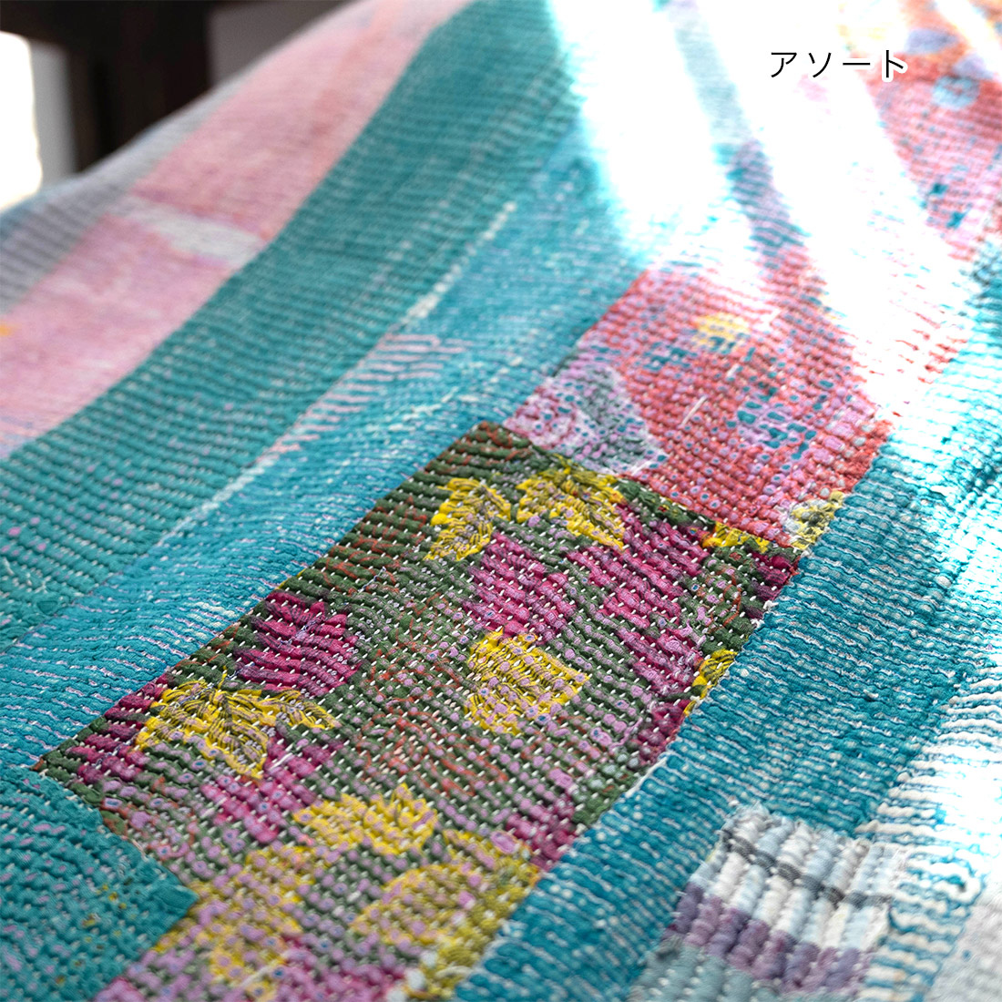 ヴィンテージのサリーやドゥパタを重ねて丁寧に刺し子を施したマルチクロスです。