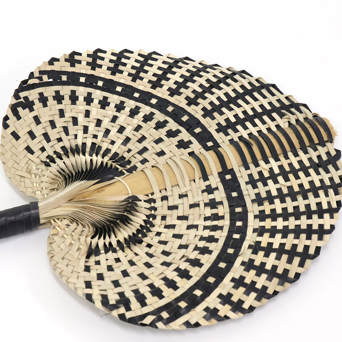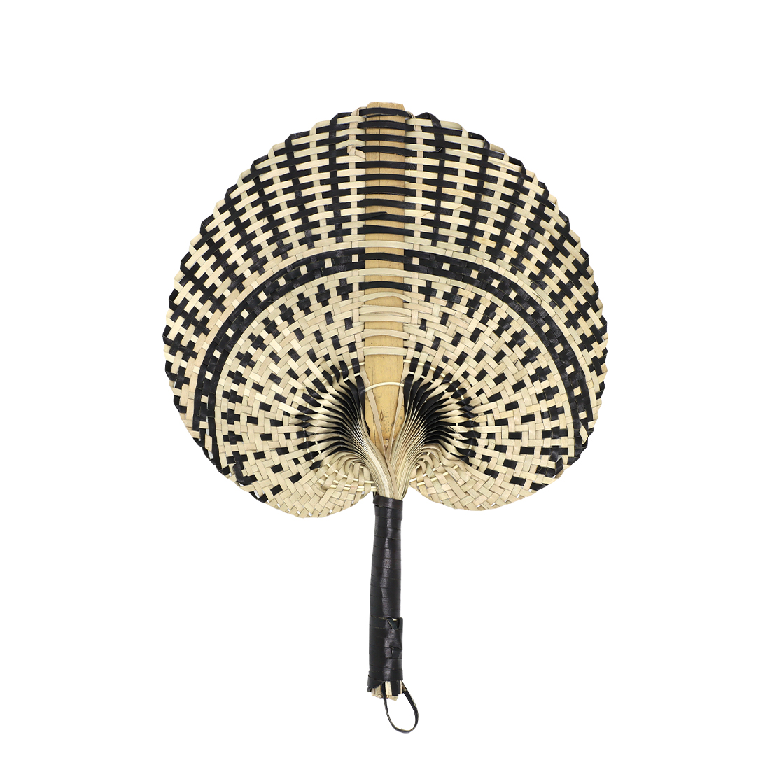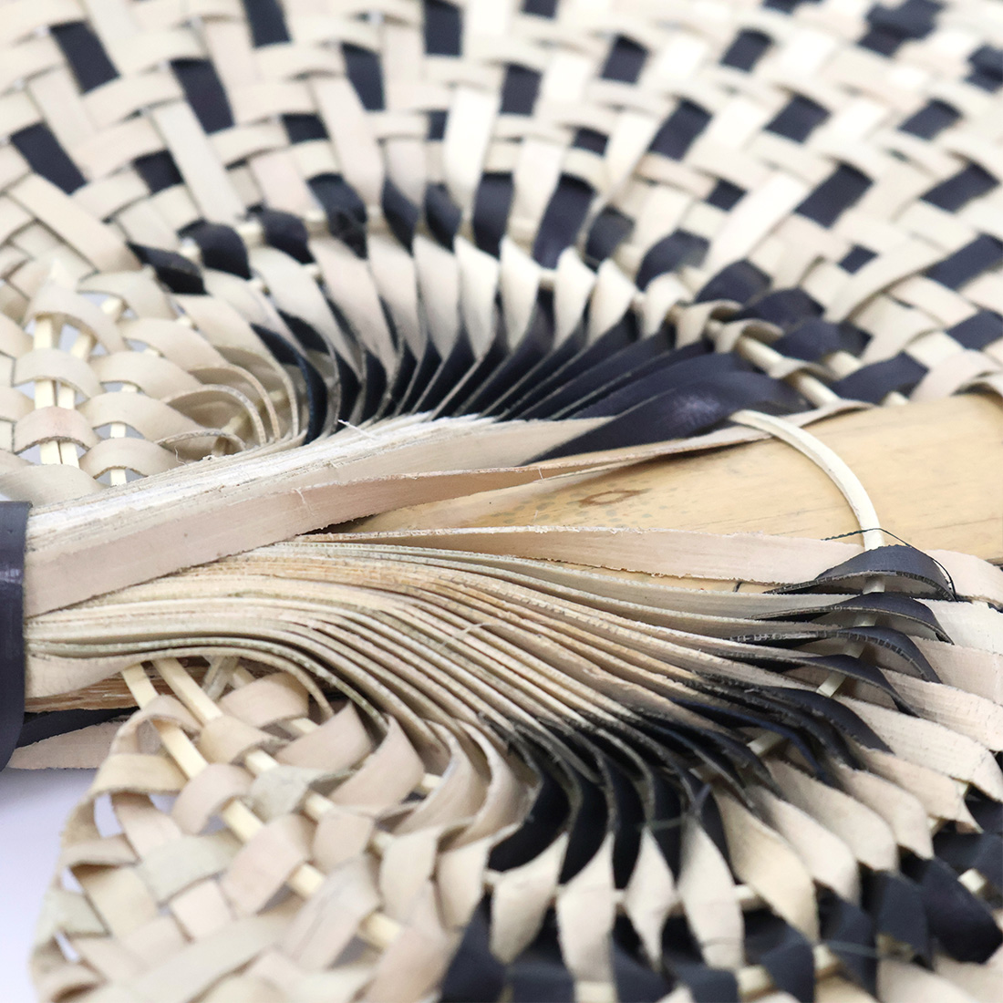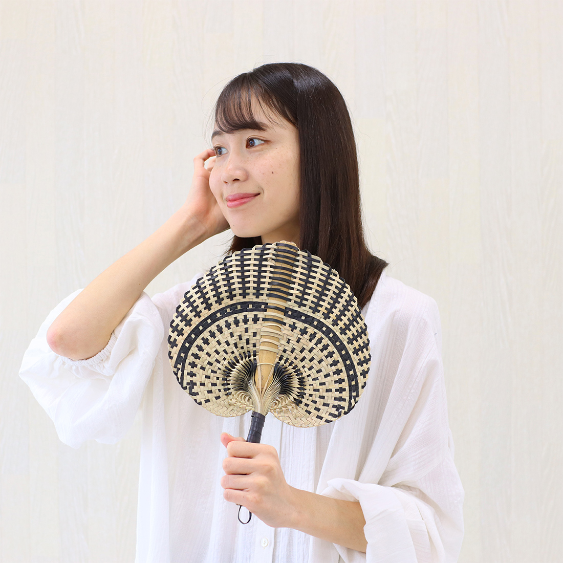 ロンタルというヤシの葉で作られたうちわ。モノトーンで美しい模様が編まれています。電気を使わない天然素材のうちわは環境にも優しいアイテムです。アウトドアに持っていくのもおすすめ!