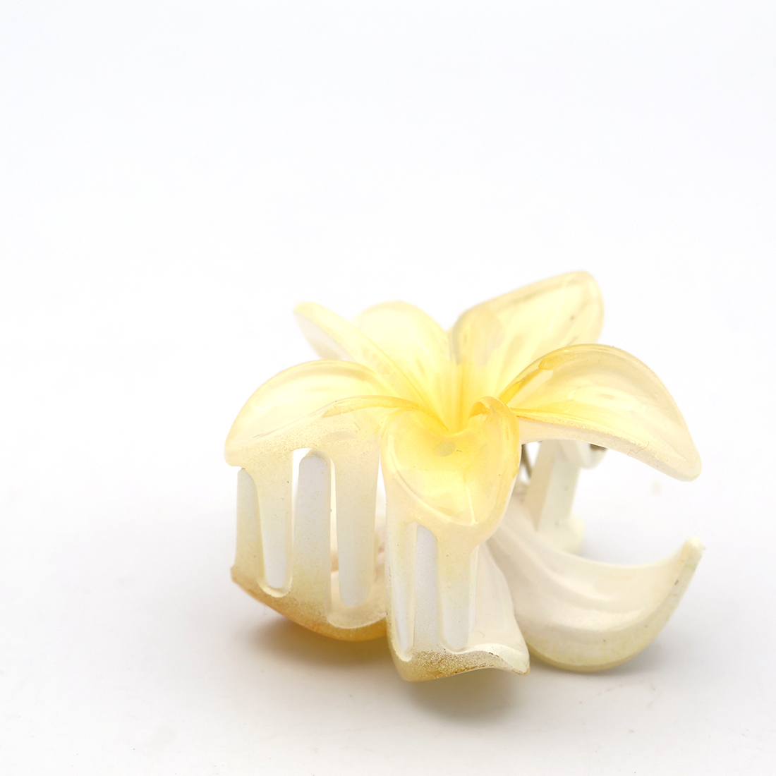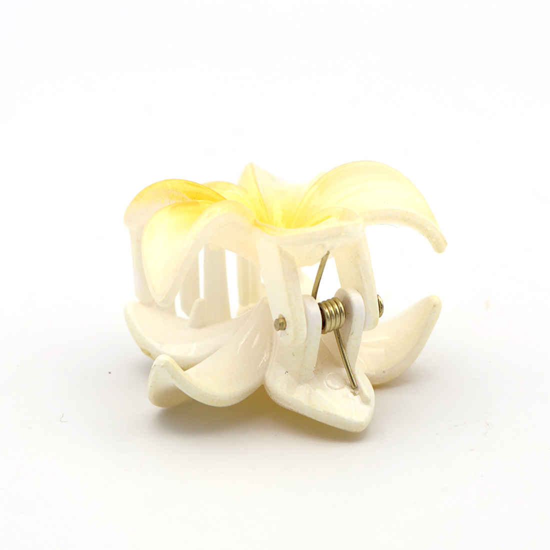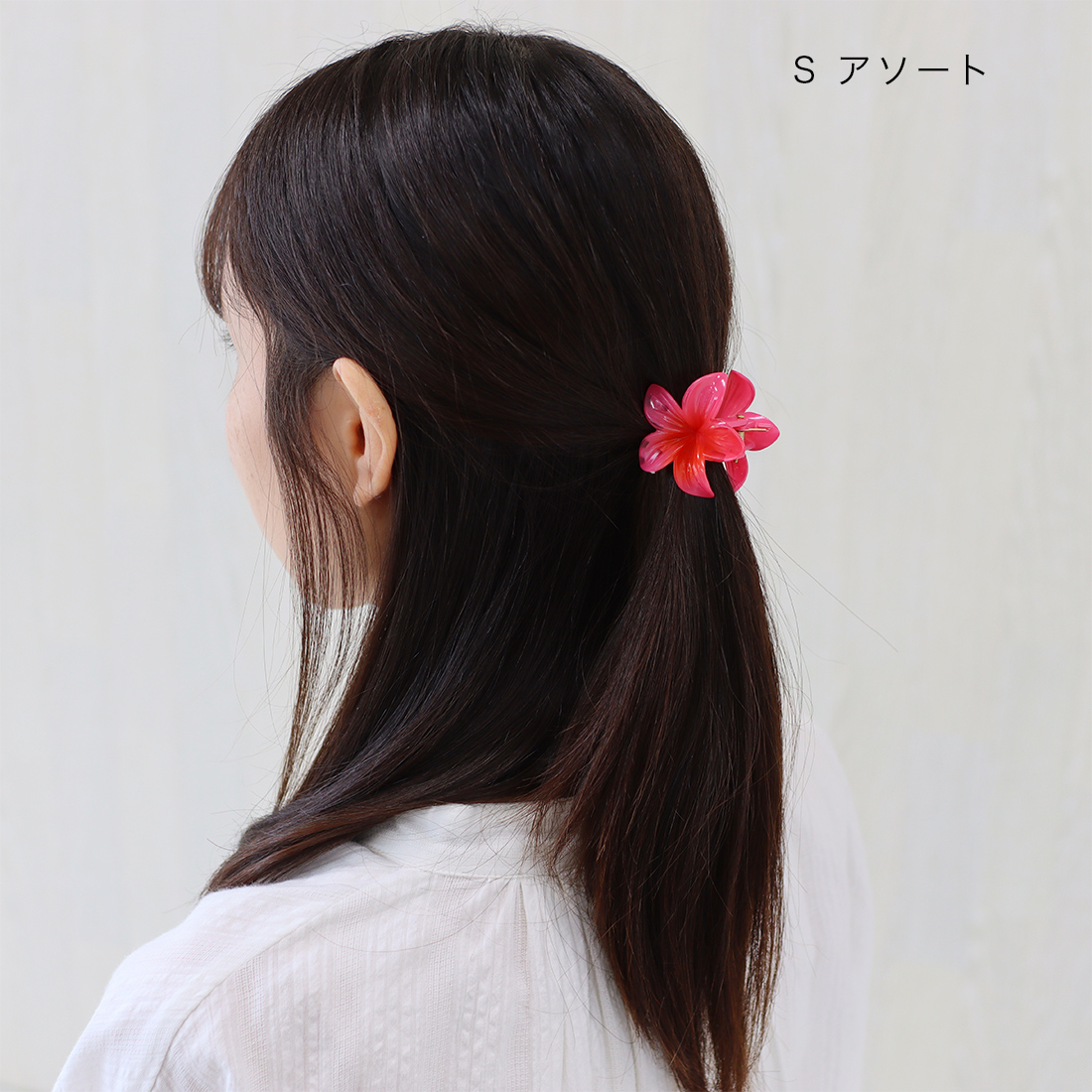 かわいいプルメリアの花が髪に彩りを添えるヘアクリップです。