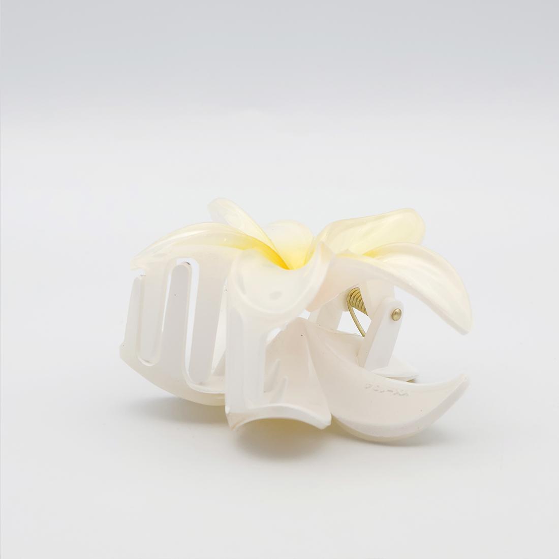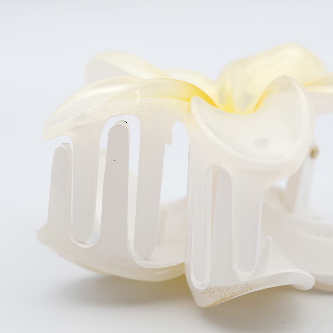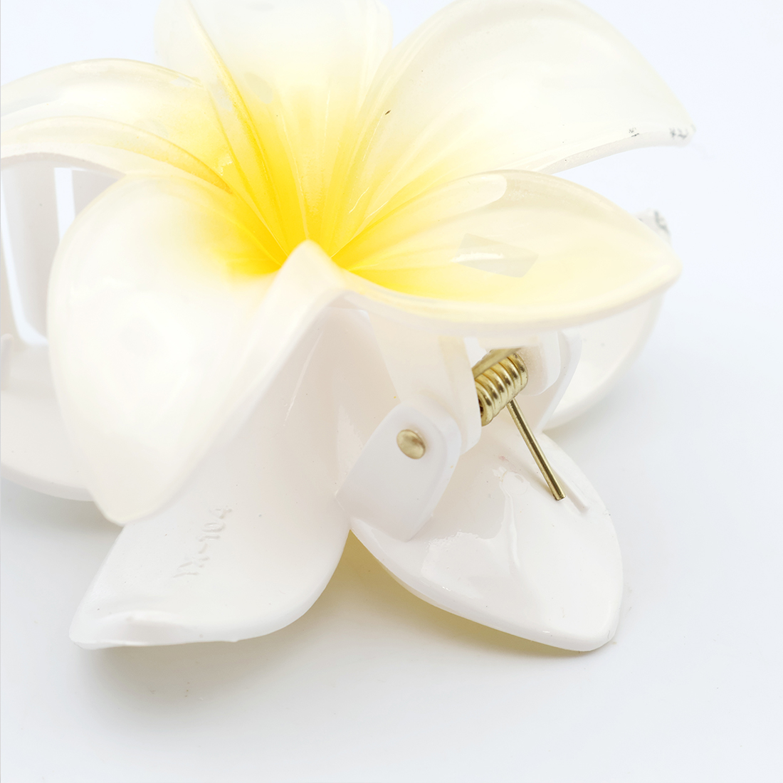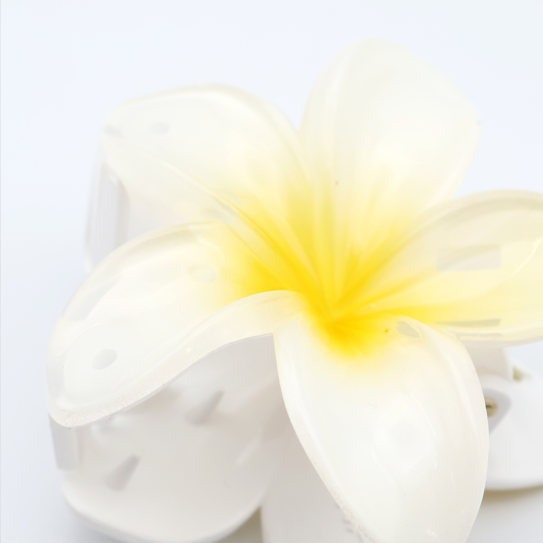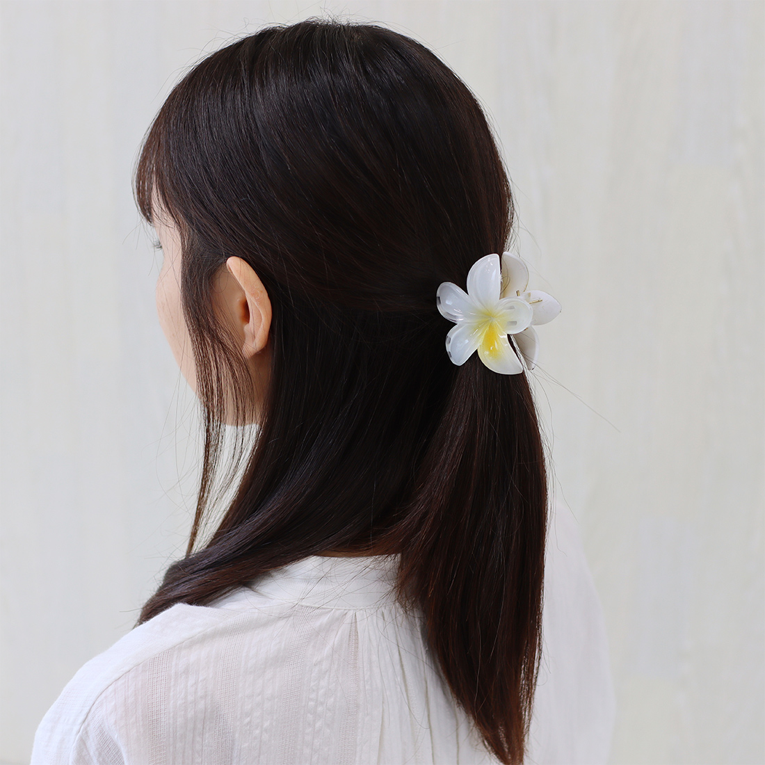 かわいいプルメリアの花が髪に彩りを添えるヘアクリップです。