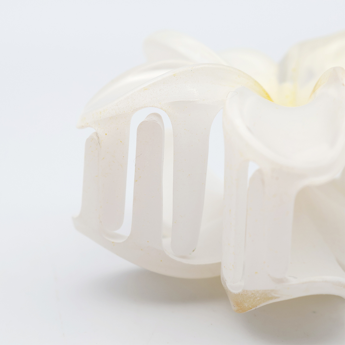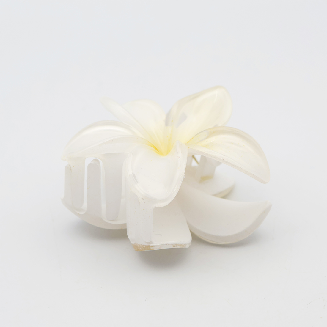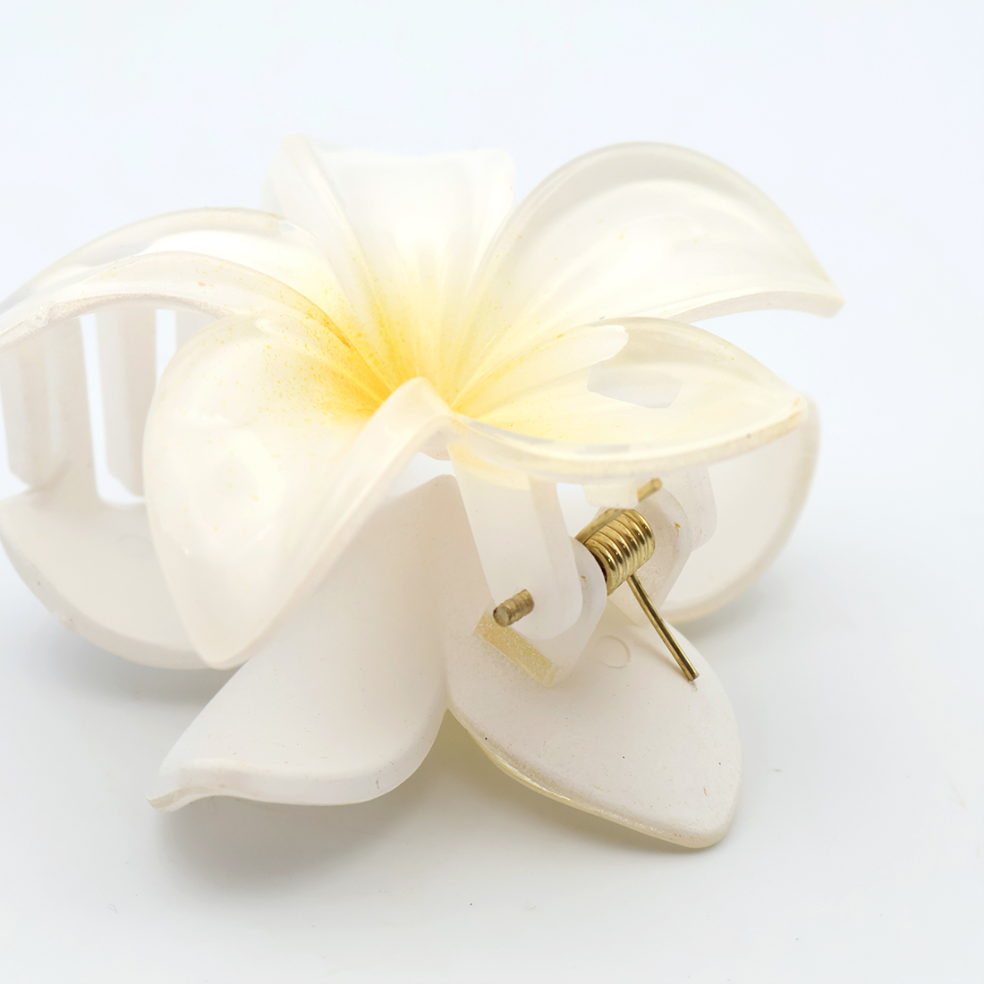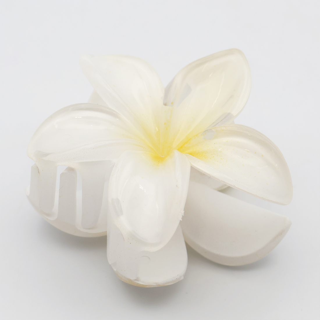 かわいいプルメリアの花が髪に彩りを添えるヘアクリップです。