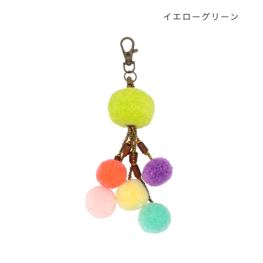 カラフルなポンポンがたくさんついたポップなキーチャーム。