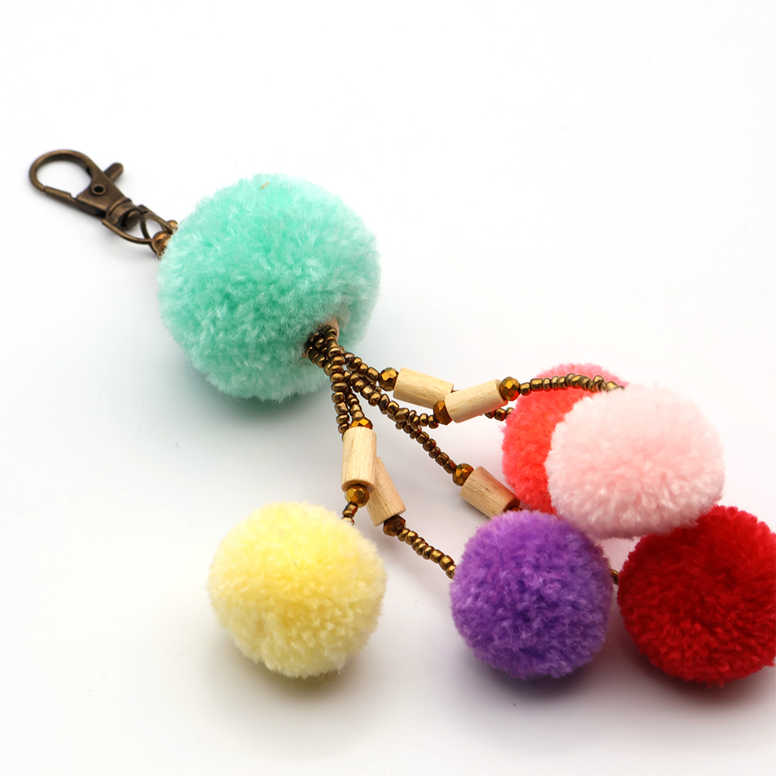 カラフルなポンポンがかわいいキーチャーム
