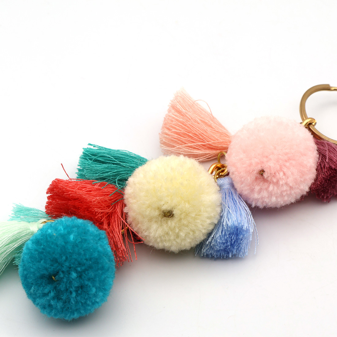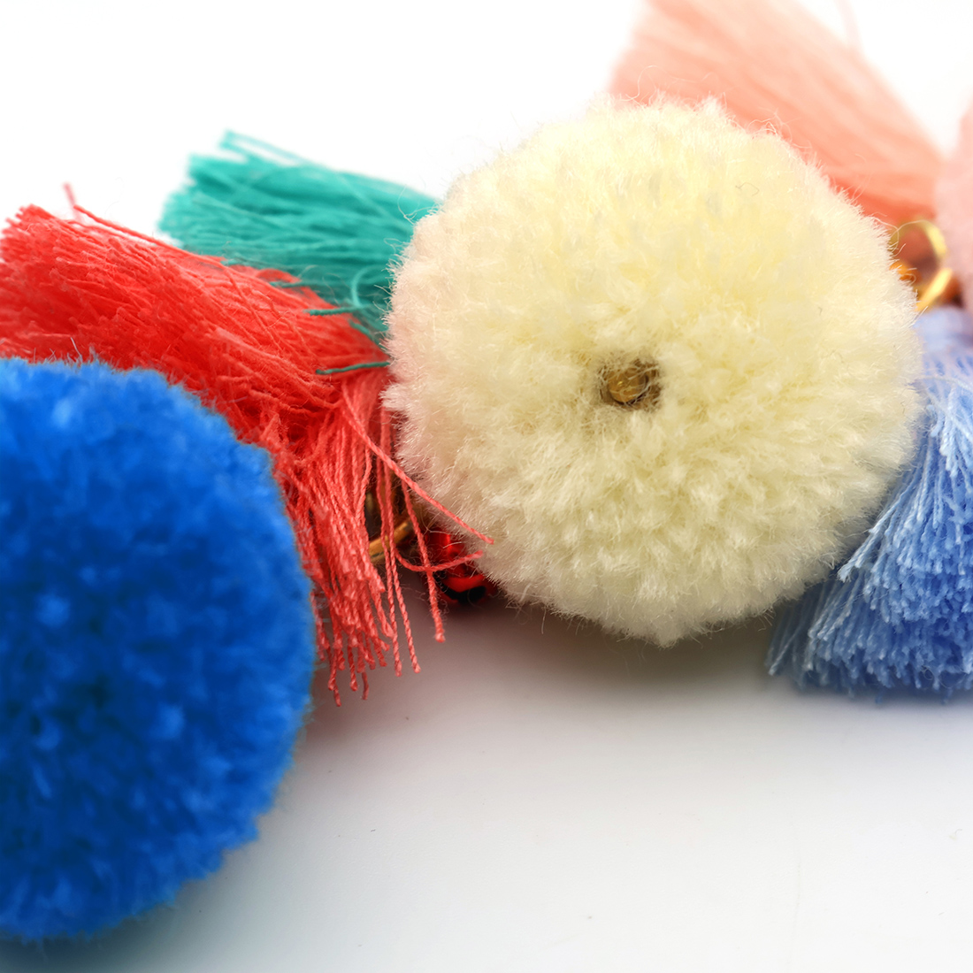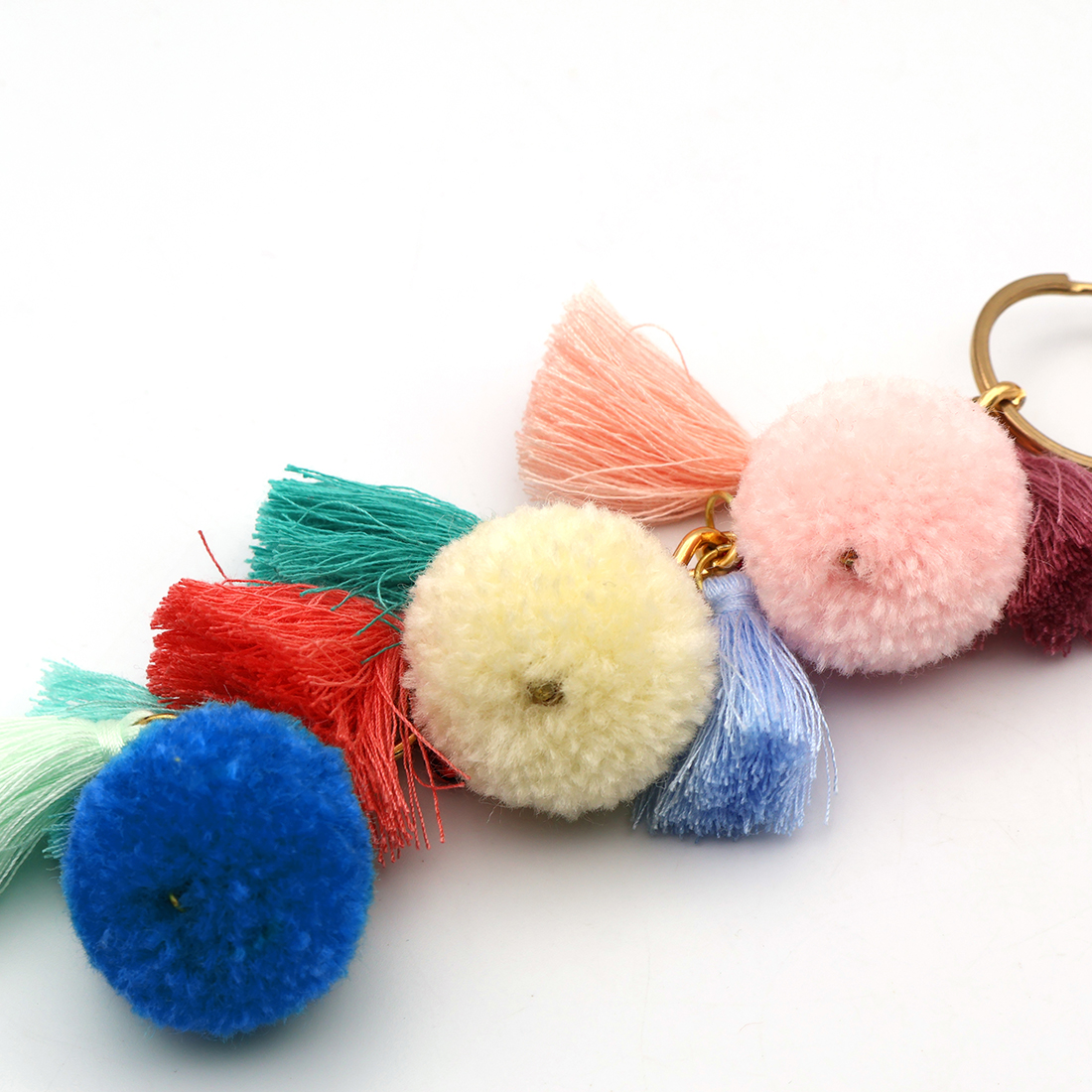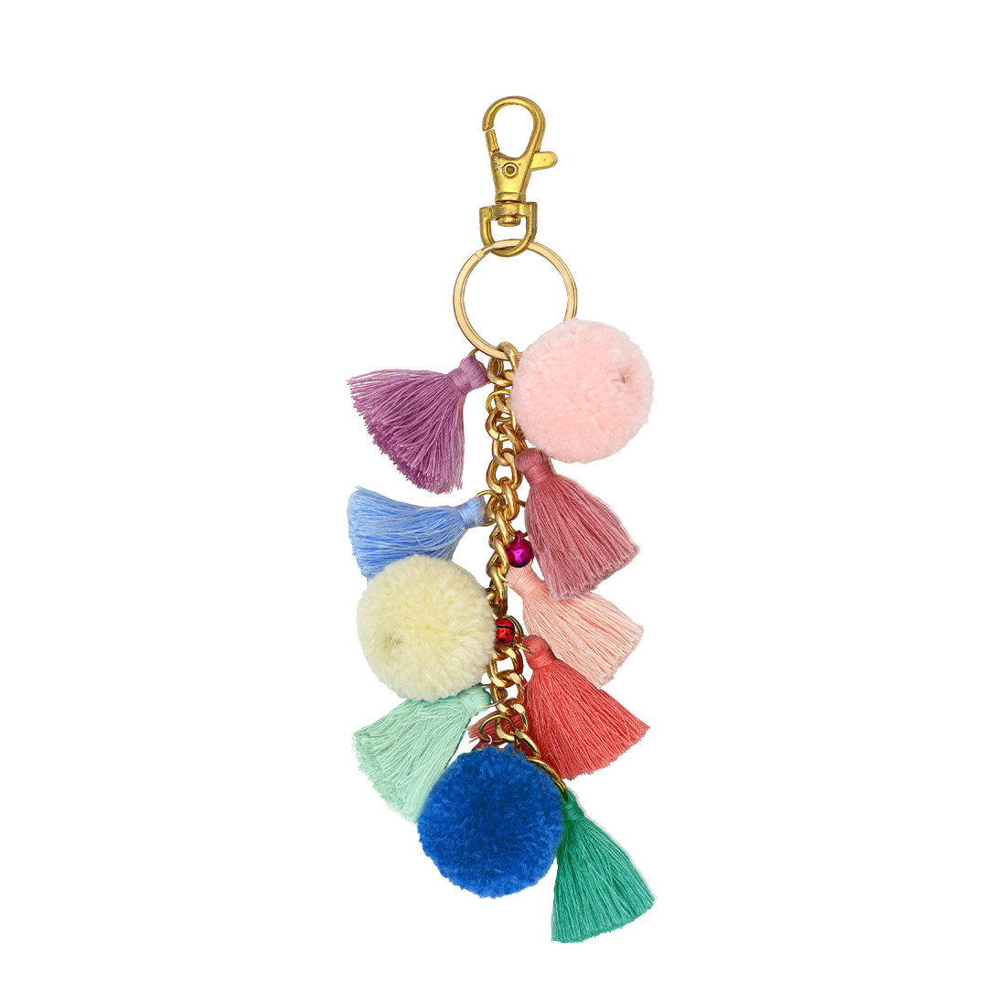 カラフルなポンポンとタッセルがたくさんついたポップなキーチャーム。
