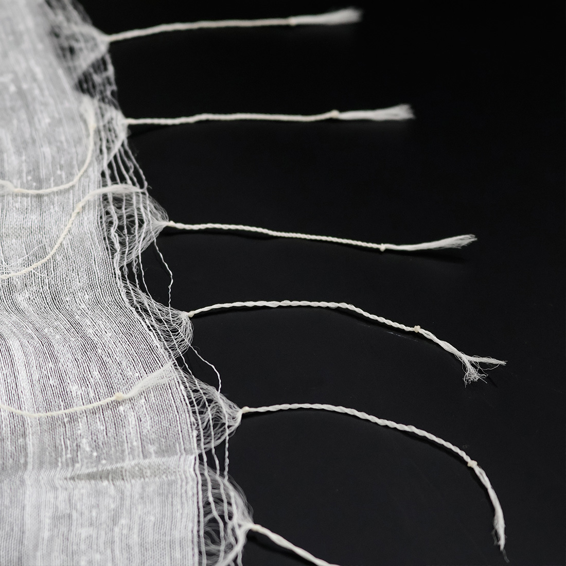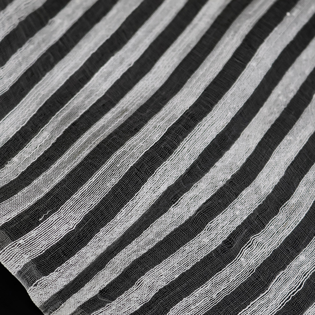 シルク&レーヨン素材のストライプ柄ストールです。程よい光沢感が印象的。