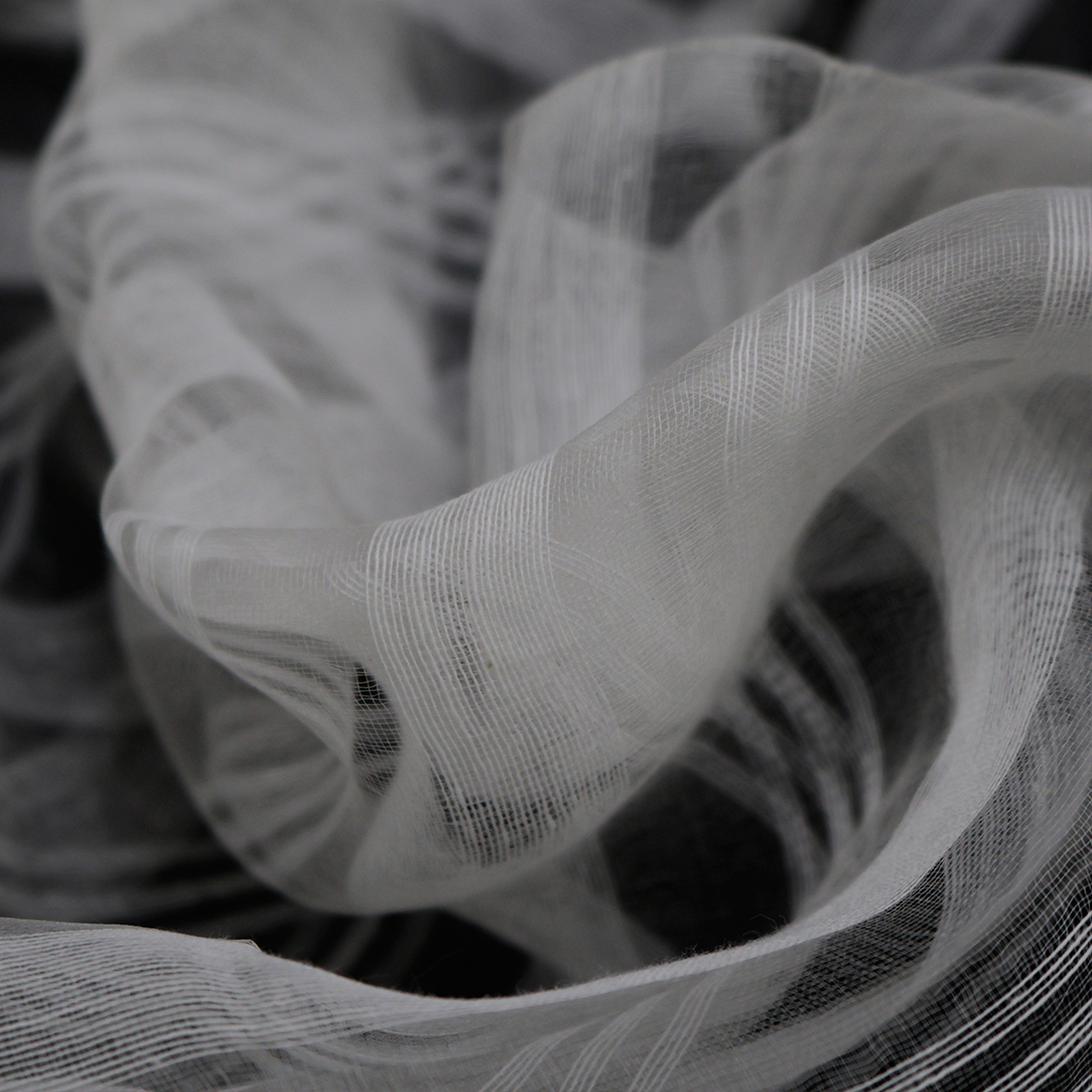 着用したときに流れるようなラインがきれいなシルク&コットンストールです。繊細なボーダー柄が印象的です。