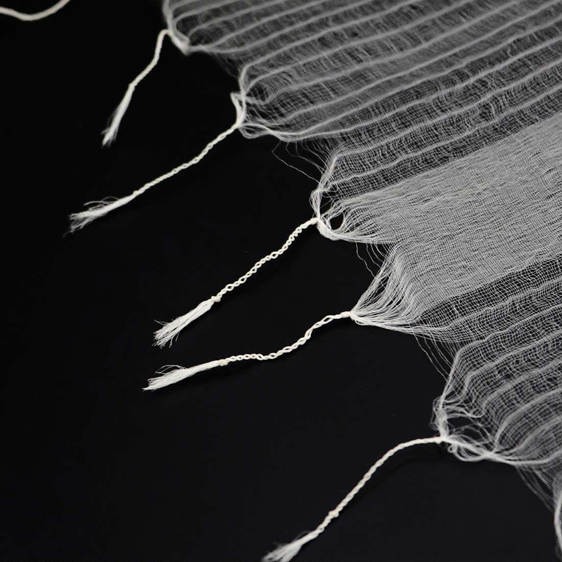 細いシルクでふんわりとした素材感。シルク100%のシンプルなスカーフです。
