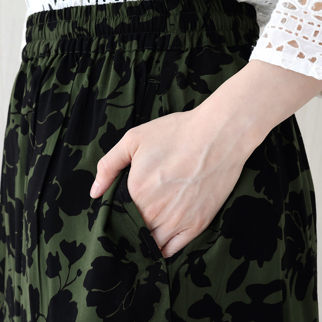 レーヨン素材が涼し気なパンツです。