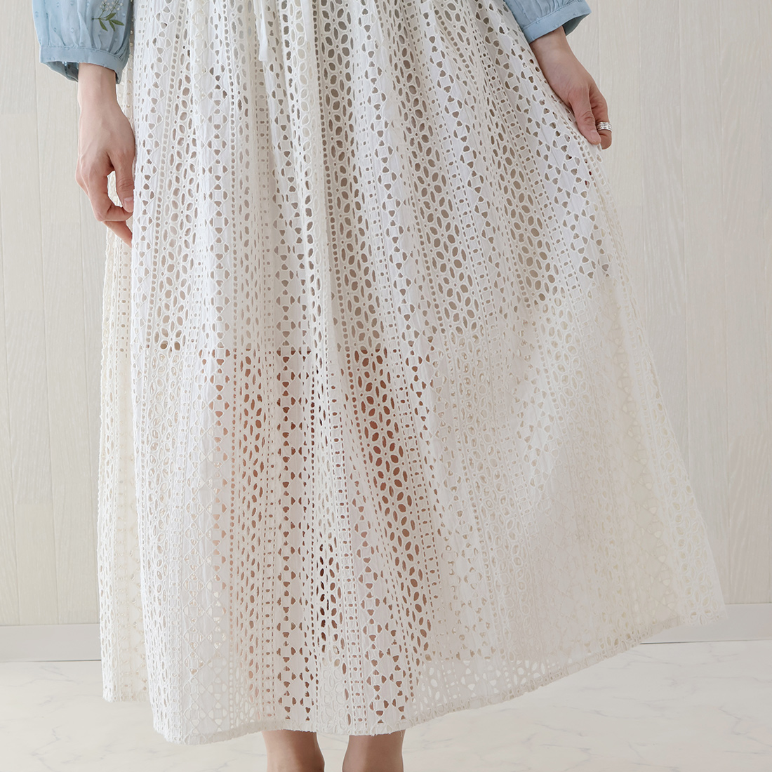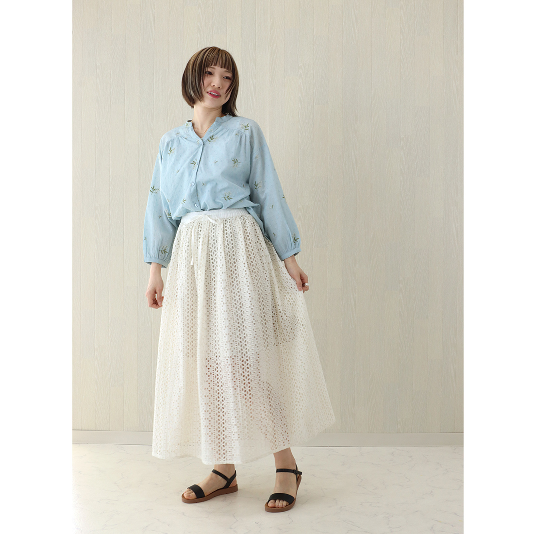 様々なコーディネートで、シフリーの透け感をお楽しみください。