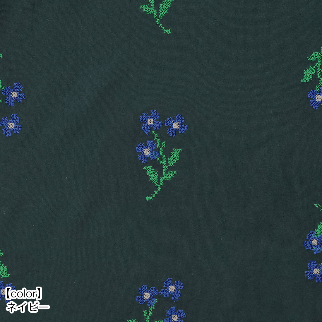 涼し気なレーヨン生地にクロスステッチで花柄の刺しゅうを施しました。