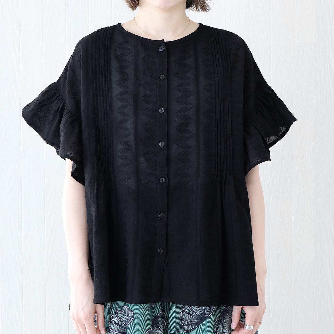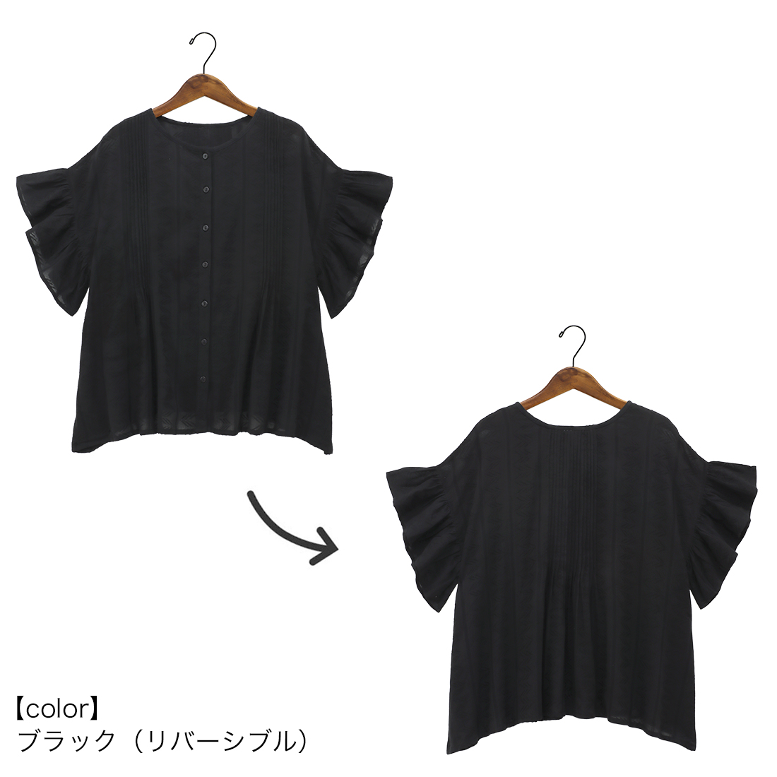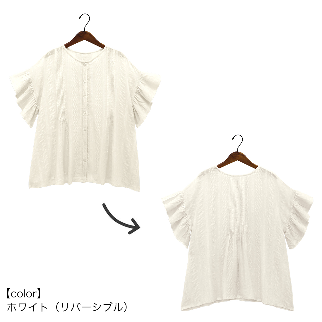ブラウスは前後2WAYで着られる仕様になっており、それぞれ違った表情が楽しめます。